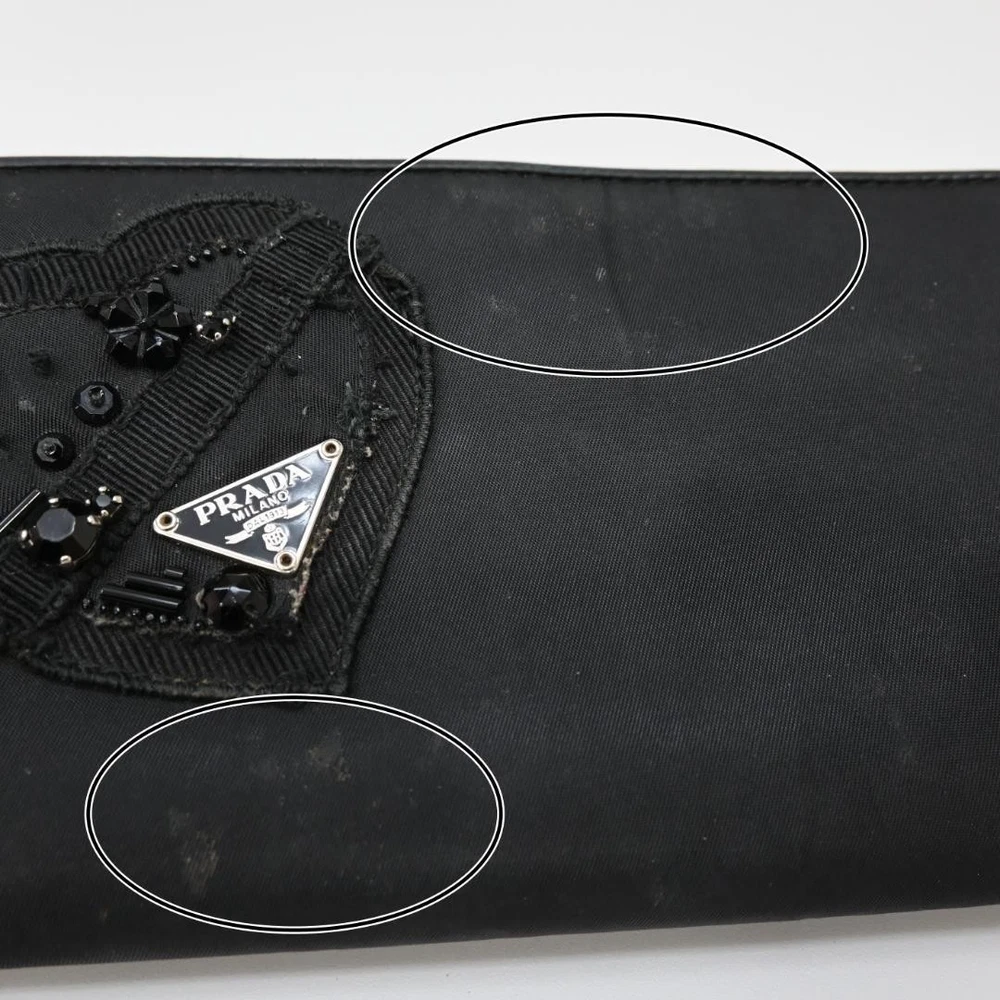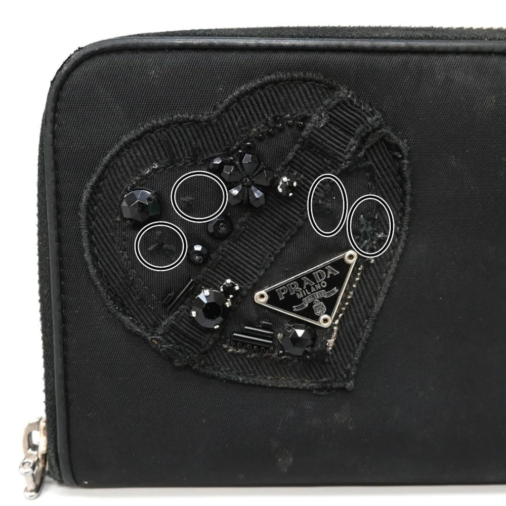 Prada Long Wallet Triangle Logo Heart Beads Leather Used Key Features - Brand: Prada - Product Type: Long Wallet - Model: Viterbo Daino Leather with Triangular Logo and Beads - Color: Black - Material: Nylon with color stones, Viterbo Daino leather trim - Features: Zip-around closure, triangular logo plate, interior card slots, heart-shaped bead accents - Size: Please refer to the images for detailed measurements (convert cm to inches) - Condition: Rated 7; shows some wear including multiple interior parts detached, broken zipper pull, surface dirt, and interior card case stains. No major damage, suitable for continued use. - No accessories are included unless noted in the title or product description. If you have any questions, please ask before purchasing. Specifications Brand Prada Country Japan Material Leather Theme Heart Accents Logo Pattern Logo Product Description Item Title 46429 Prada Long Wallet Triangle Logo Plate Heart Beads Payment Supports managed payments Please pay within 5 days after auction is finished. About Us We are located in Japan. It's our pleasure to make you happy by proposing our recommend item. If you have any questions or request about items, please feel free to ask us. International Buyers - Please Note: -Import duties, taxes, and charges are not included in the item price or shipping charges. These charges are the buyer's responsibility. -Please check with your country's customs office to determine what these additional costs will be prior to bidding/buying. -These charges are normally collected by the delivering freight (shipping) company or when you pick the item up - do not confuse them for additional shipping charges. -We do not mark merchandise values below value or mark items as - gifts - The US and International government regulations prohibit such behavior. Thank you for your understanding.