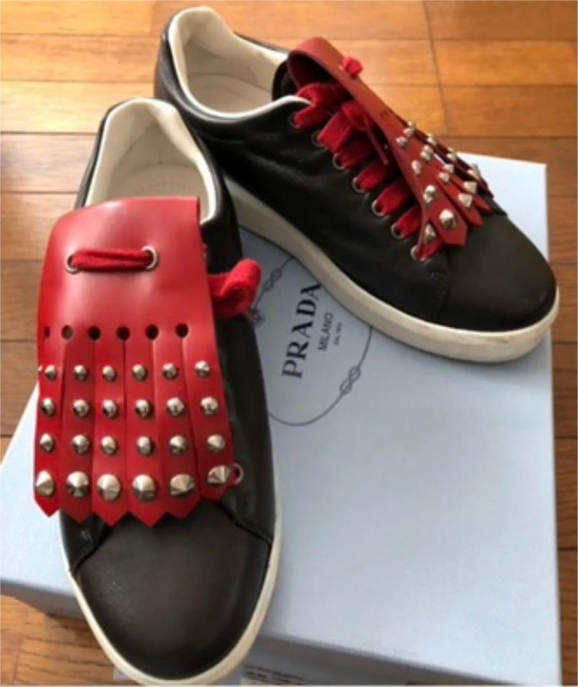 Prada Leather Sneakers Women 5.5US/37 UK 23.5cm with Box & Drawstring /Used Key Features Prada Leather Sneakers in Size 37 with Box, Shoe Case, and Drawstring Bag. These stylish sneakers feature a unique design with two types of embellishments: studs and plain. Made from high-quality leather, they are lightly used with minimal wear, mainly some scuffs on the white rubber parts. The sneakers are in excellent condition with few uses, perfect for fashion-forward individuals. The set includes the original box, shoe case, and a drawstring bag for storage or travel. A fashionable and versatile addition to your wardrobe, ideal for casual or chic occasions. Item Specifics: C:Exterior Material: Leather C:Style: Sneakers C:Exterior Color: Black C:Department: Women C:Product Line: Prada C:Handle/Strap Material: N/A C:Lining Color: Black C:Lining Material: Leather C:Handle/Strap Color: N/A C:Size: 37 C:Hardware Color: Silver Specifications Brand Prada Country Japan US Shoe Size 5.5 Department Woman UK Shoe Size 5 EU Shoe Size 37 JP Shoe Size 23.5 Product Description Item Title Men 5.5US Prada Leather Sneakers Payment Supports managed payments Please pay within 5 days after auction is finished. About Us We are located in Japan. It's our pleasure to make you happy by proposing our recommend item. If you have any questions or request about items, please feel free to ask us. International Buyers - Please Note: -Import duties, taxes, and charges are not included in the item price or shipping charges. These charges are the buyer's responsibility. -Please check with your country's customs office to determine what these additional costs will be prior to bidding/buying. -These charges are normally collected by the delivering freight (shipping) company or when you pick the item up - do not confuse them for additional shipping charges. -We do not mark merchandise values below value or mark items as - gifts - The US and International government regulations prohibit such behavior. Thank you for your understanding.