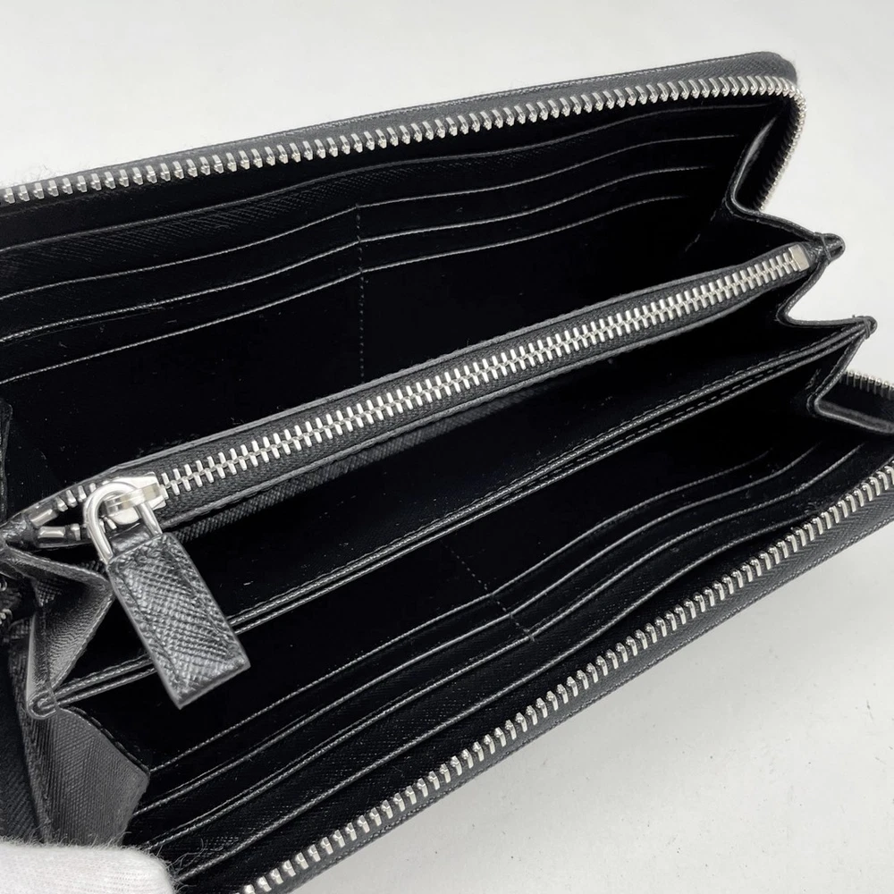 Prada Logo Round Zipper Long Wallet Women's [Used] Item Description [Management number] 1000091782587 [Brand name] PRADA [Brand Condition Rank] Rank AB [Type] Logo Round Zipper Long Wallet [Line] Billfold Coin Purse Round Zip [Applicable] Ladies [Width] Approx. 19.5cm [Height] Approx. 10.5cm [Depth] Approx. 2.5cm [Material] Leather [Color] Nero Black [Overall] Loss of shape, daily odor, scratches, wrinkles, dirt [Inside] Floating [Metal fittings] Small scratches [Around the zipper] Fluffy [Accessories] None If you are looking for a long wallet, search for it Payment Shipping Return Policy International Buyers Please Note Import duties, taxes, and charges are not included in the item price or shipping cost. These charges are the buyer's responsibility. Please check with your country's customs office to determine what these additional costs will be prior to bidding or buying.