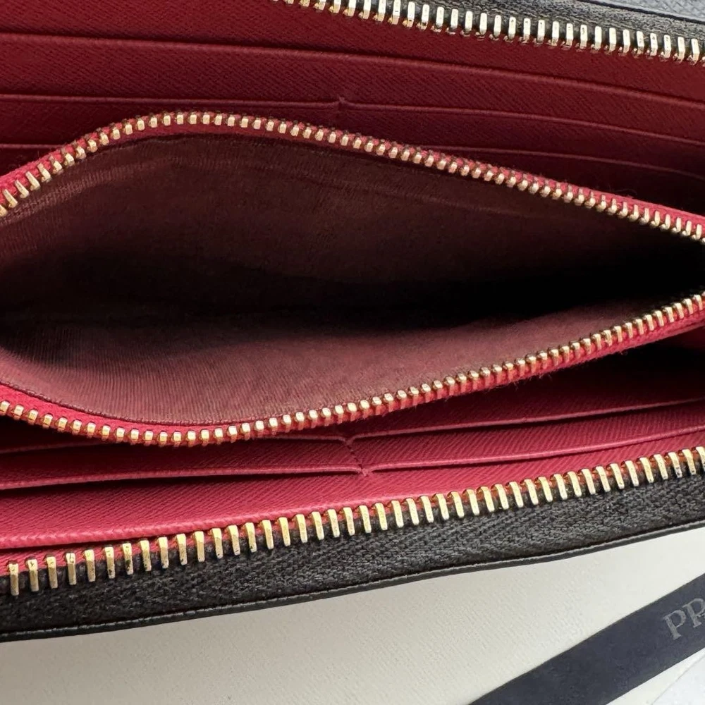 Absolutely love this Prada wallet—it’s sleek, durable, and still looks brand new despite being used. The Saffiano leather is so sturdy, and the zipper works smoothly. Plenty of space for cards and cash without feeling bulky. Perfect condition, no wear at all. A timeless piece that’s totally worth it!