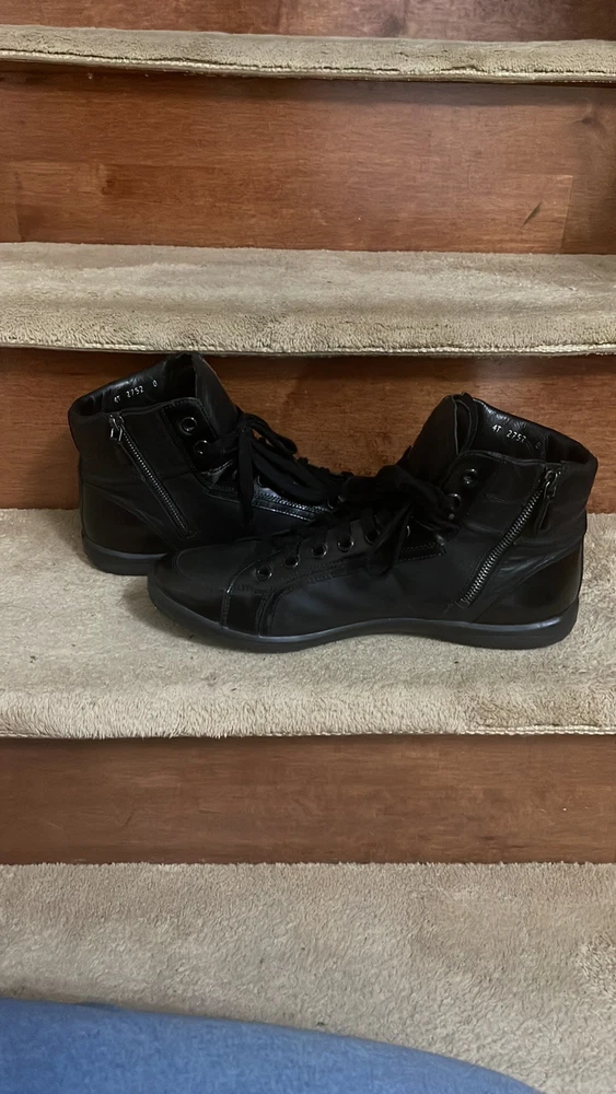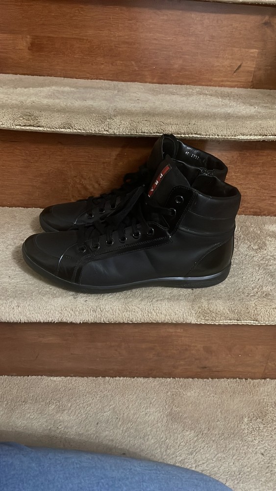 Prada Men Black Leather High-Top Sneakers Size 8 Like New