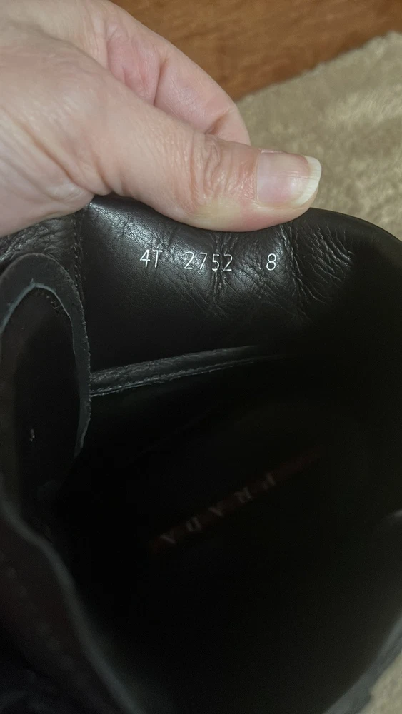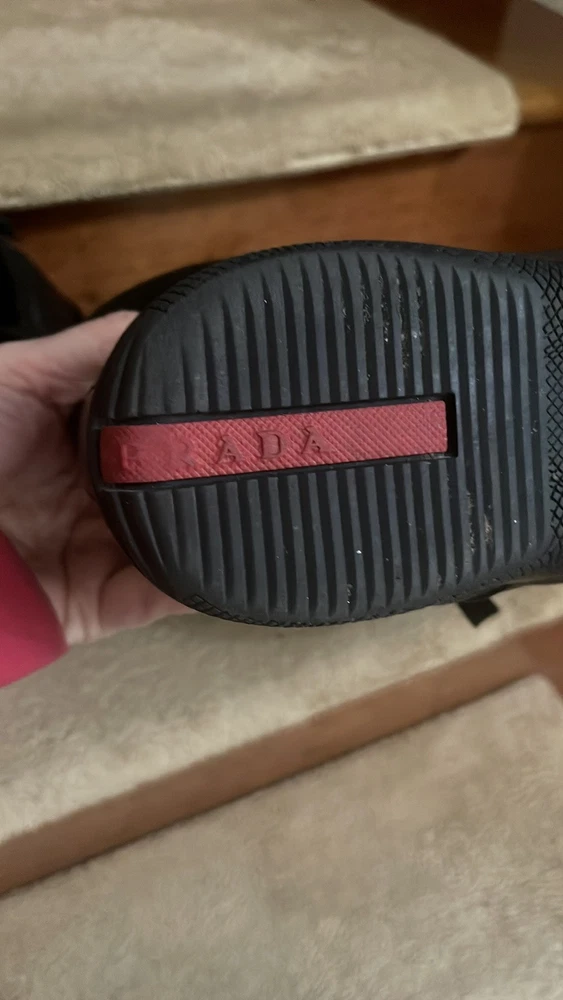 Department: Men Upper Material: Leather Color: Black US Shoe Size: 8 Style: Sneaker Type: Casual Outsole Material: Leather Brand: PRADA