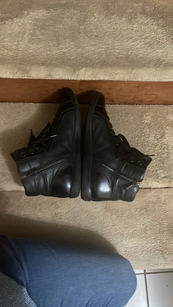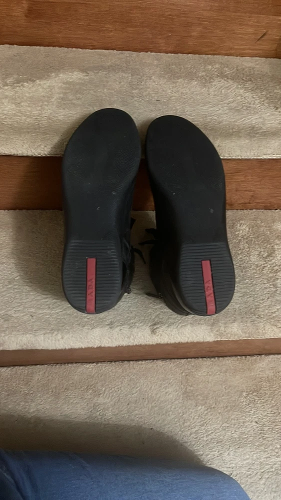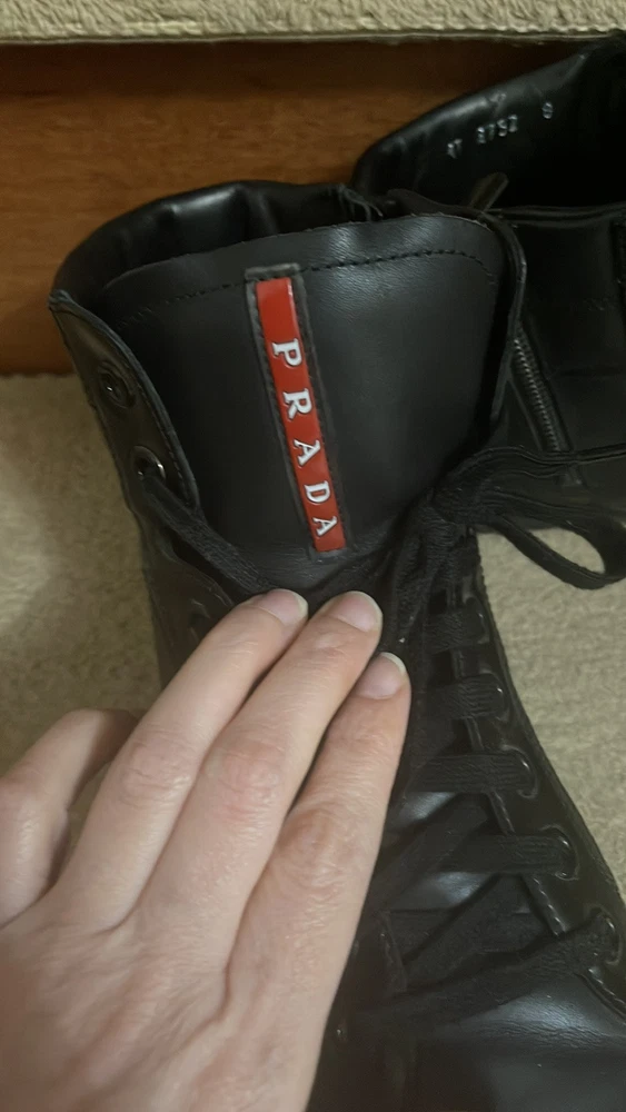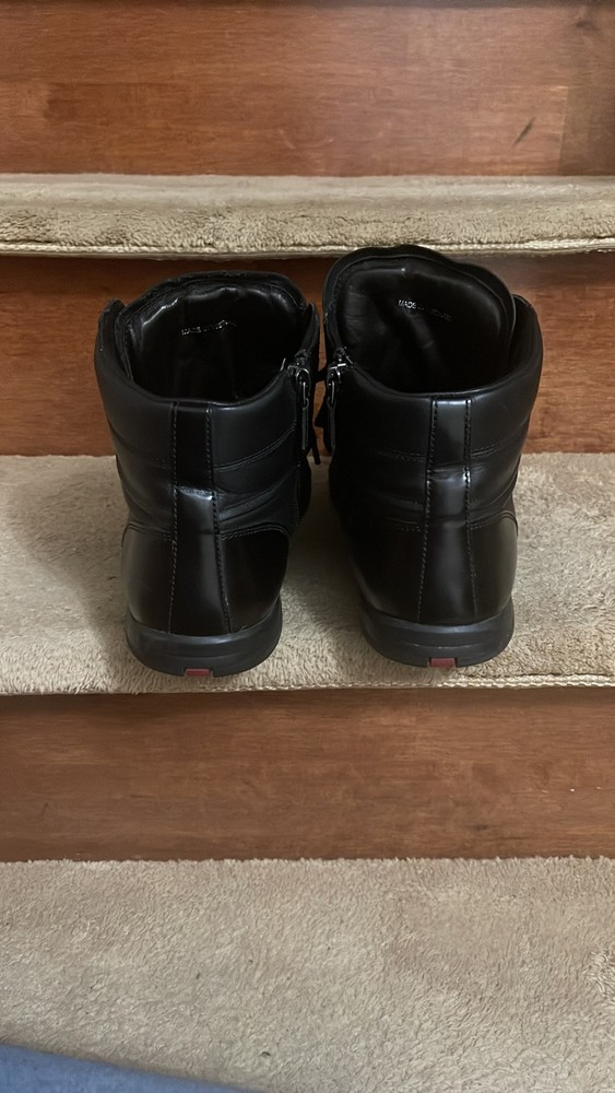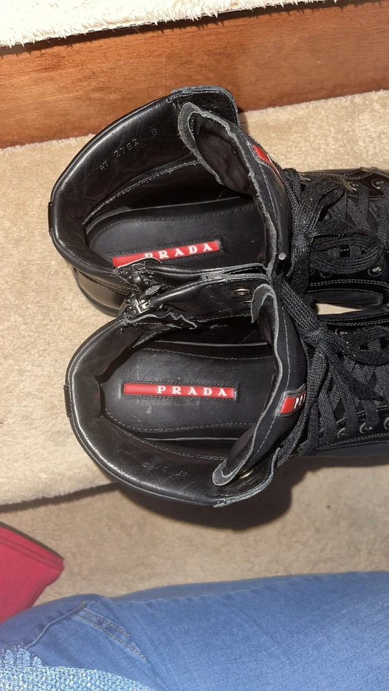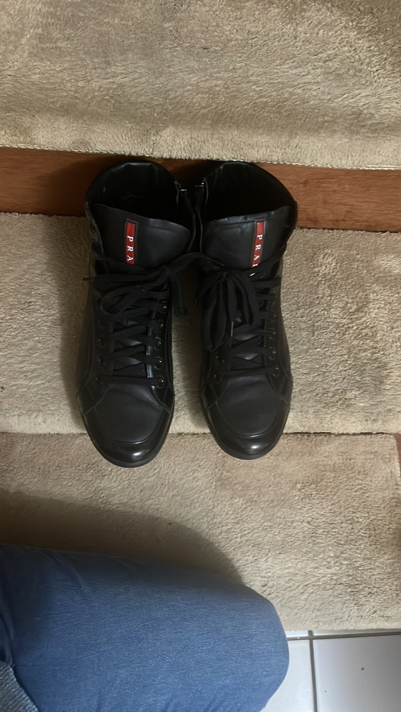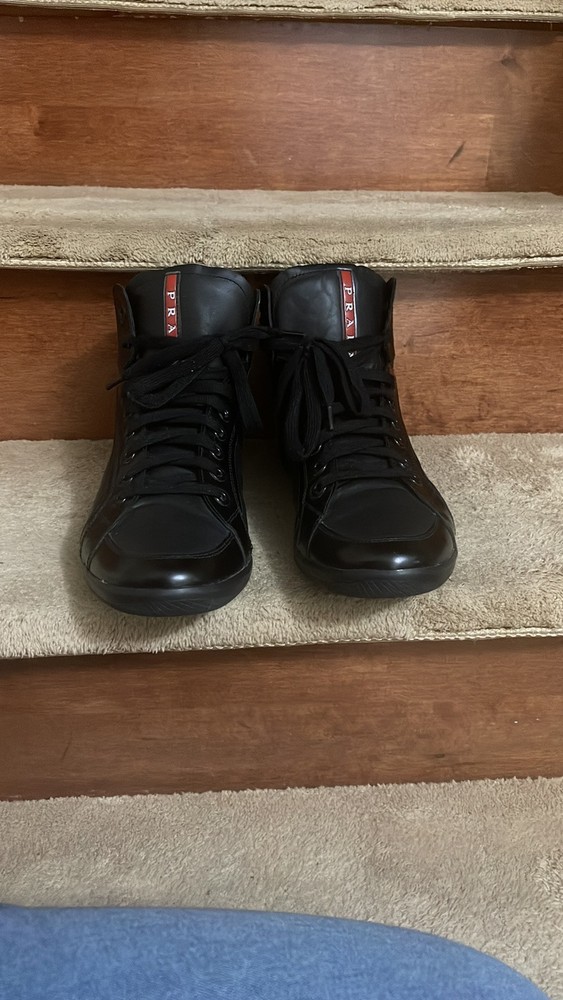1. These Prada high-tops are a game-changer—luxurious leather, flawless stitching, and unbeatable comfort. The sleek black and red design adds a bold touch, while the ankle support makes them perfect for all-day wear. A must-have for any sneaker lover looking for premium quality and style.
