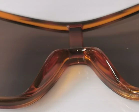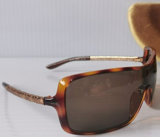 Vintage Y2K Diesel Sunglasses & Case Brown Shield Wrap Style White Leather