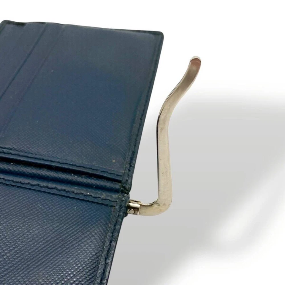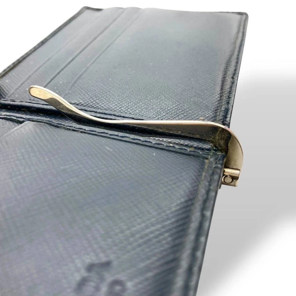 This Prada bifold wallet is sleek and stylish—perfect for everyday use! The navy leather is high-quality and durable, with a secure money clip for bills. Compact yet spacious, it fits cards and cash comfortably. The craftsmanship is impeccable, and the subtle branding adds a touch of luxury. Shipping was smooth, and the seller provided clear details on import duties. A fantastic purchase for anyone looking for a premium wallet!