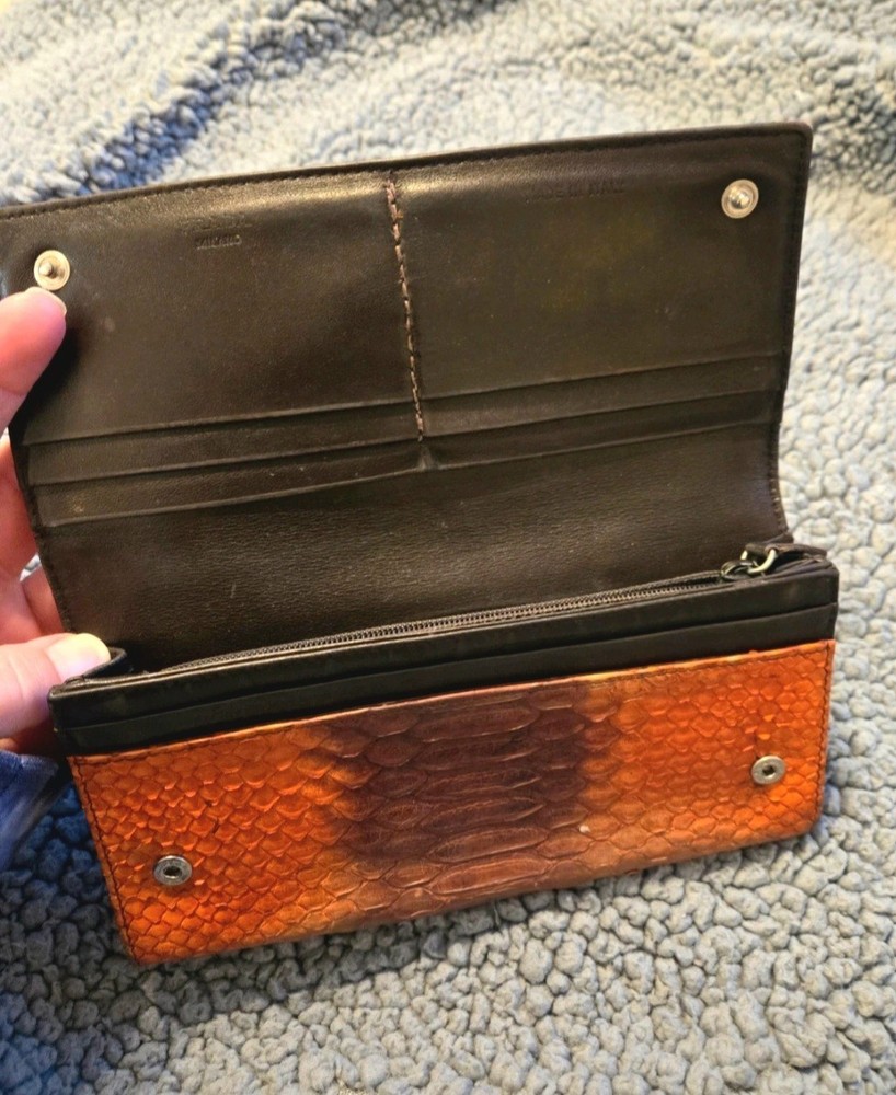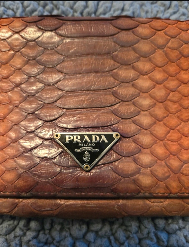 Prada Orange Brown Python Skin Wallet Luxury Designer Accessory