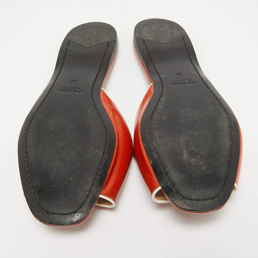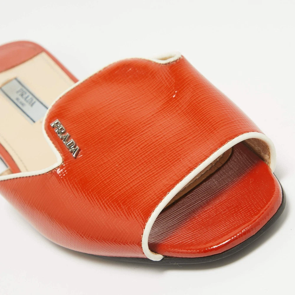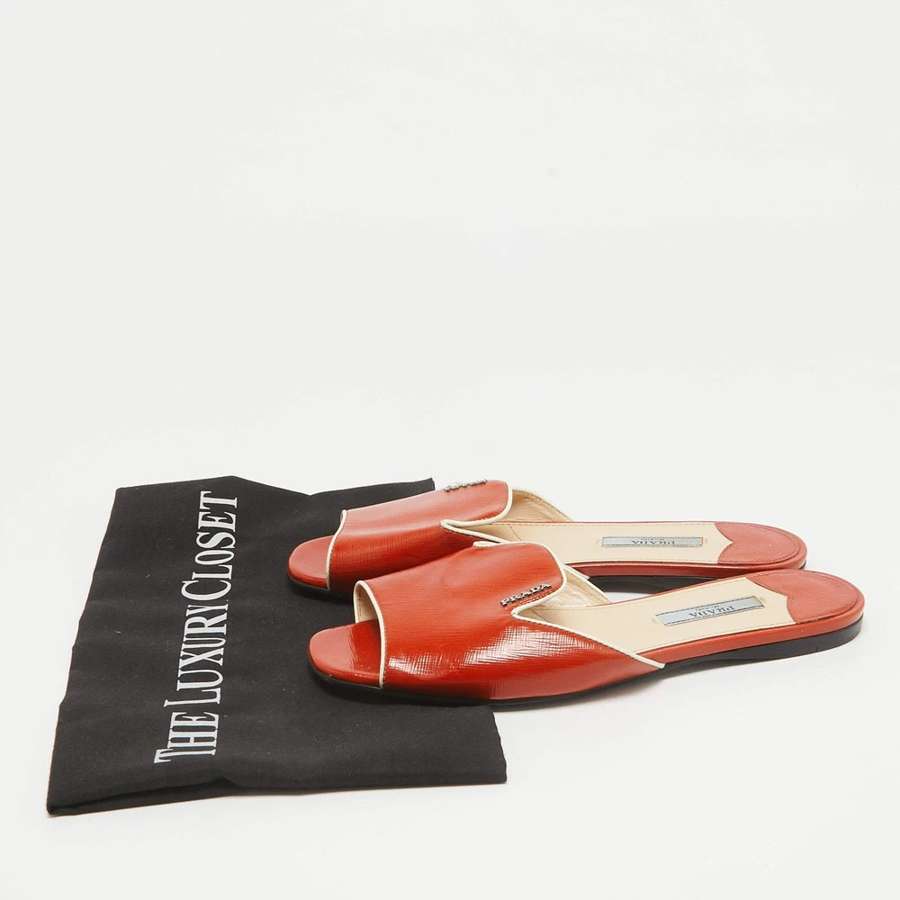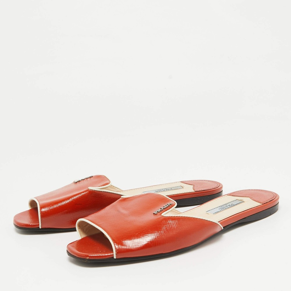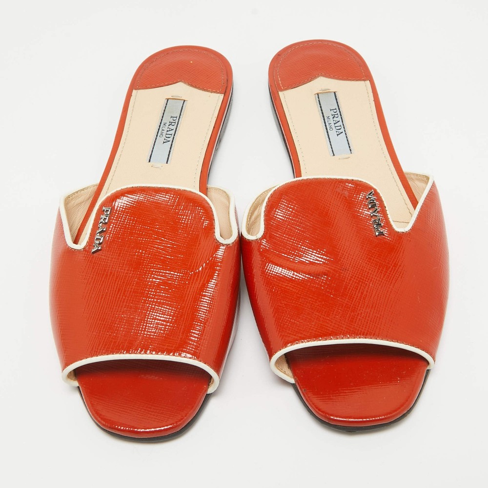 Our eBay Store About Us Contact Us Add to Favorite Sellers Prada Orange Patent Leather Flat Slides Size 36 Enhance your casual looks with a touch of high style with these designer slides. Rendered in quality material with a lovely hue adorning its expanse, this pair is a must-have! Product Details Brand Prada Color Orange Includes The Luxury Closet Packaging Outsole Length 23 cm Outsole Width 8 cm Size 36 Certified by The Luxury Closet This item has gone through a detailed authentication process overseen by our experts. We offer a lifetime guarantee of authenticity on all our items. How We Check The in-house team of experts at The Luxury Closet is highly trained to verify the authenticity and the condition of the luxury products. They ensure that only 100% authentic items are put on sale.The evaluation process is unique with its own mix of assessment criteria and differs according to the category. Each item is evaluated based on the following combination of hallmarks, hardware, stitching, symmetry, material, craftsmanship, stamping, codes, hologram stickers, and packaging. Our authenticators also check if the items have been modified or amended (e.g., aftermarket diamonds, replaced batteries, repaired bags, etc.) International Buyers Import duties, taxes and charges are not included in the item price. These charges are the buyers responsibility. Please check with your country’s customs office to determine what these additional cost will be prior to buying.