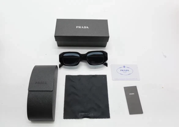 Elevate your style with these authentic Prada PR17WS 1AB5S049 sunglasses, designed for the modern woman. The sleek black plastic frame provides a classic look that complements any outfit, while the gray lenses offer a versatile hue that's easy to pair with a range of colors and styles.As a testament to their quality, these sunglasses come with tags ensuring you receive a genuine Prada product. The timeless rectangle shape flatters various face shapes and instantly enhances your outdoor ensemble, making them a must-have accessory for any fashion-conscious individual.