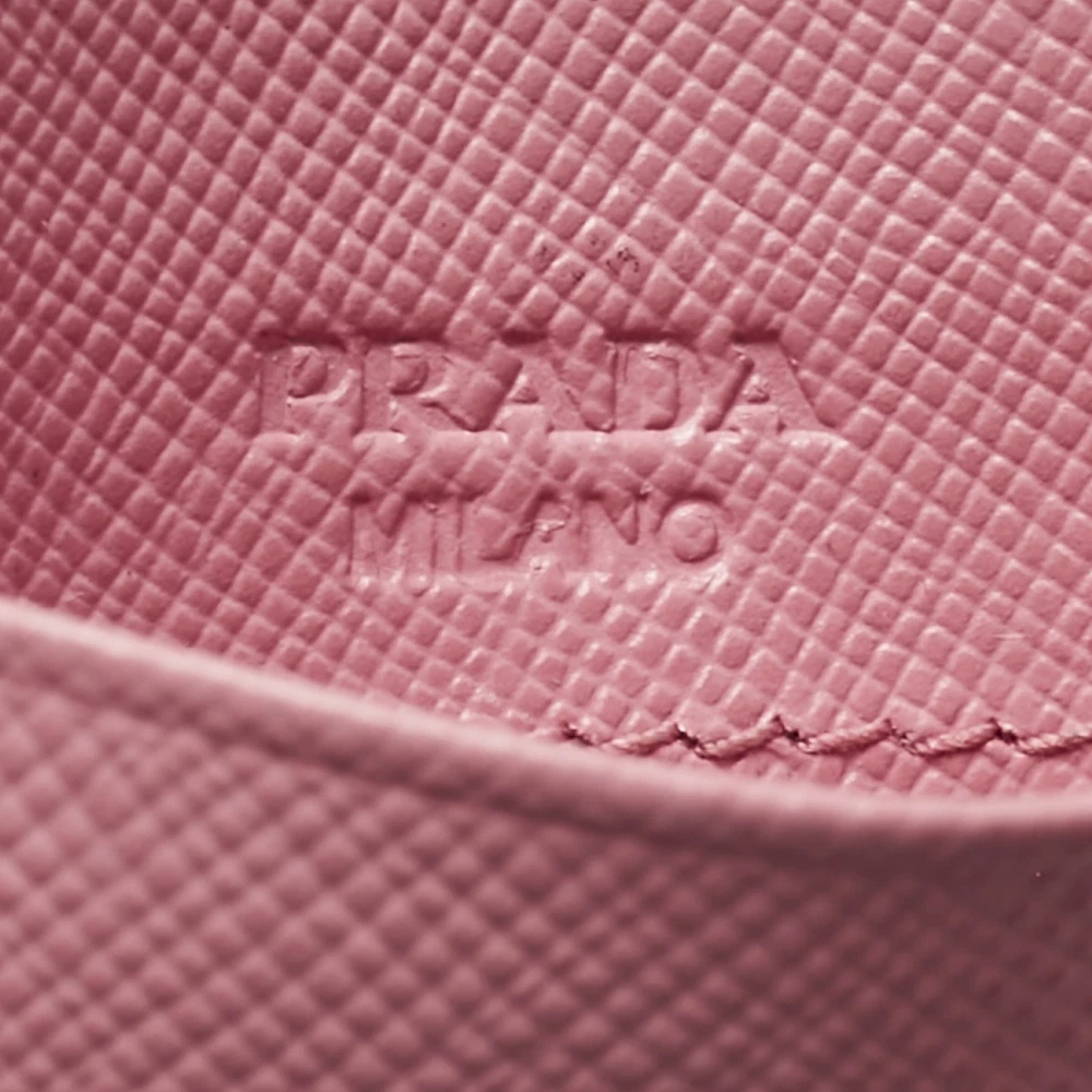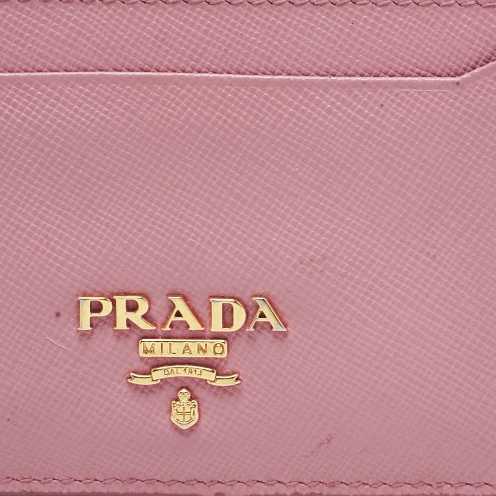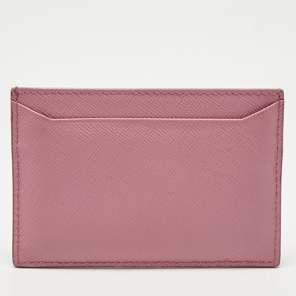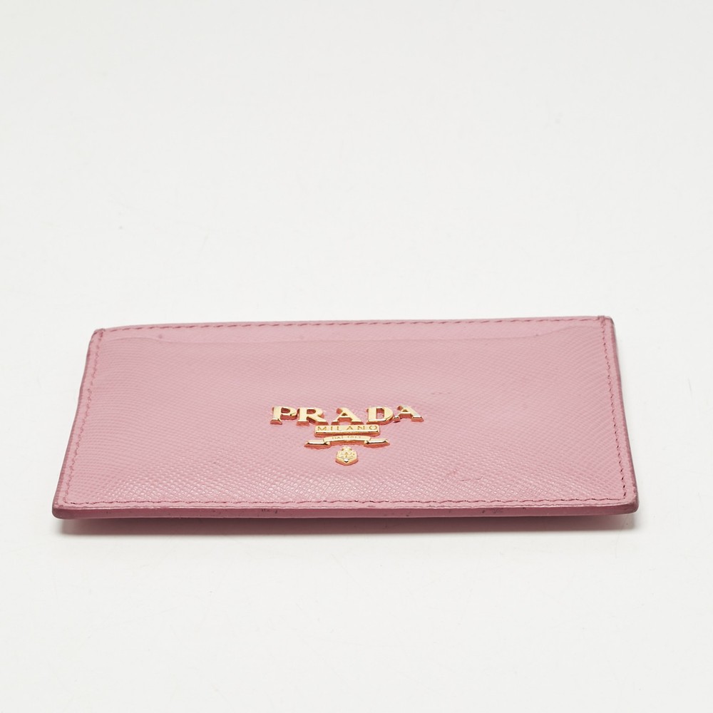 Prada’s pink card holder is crafted in signature saffiano leather and detailed with logo lettering. A sleek everyday essential with a playful twist and unmistakable design codes.Certified by The Luxury Closet - This item has gone through a detailed authentication process overseen by our experts. We offer a lifetime guarantee of authenticity on all our items. Import duties, taxes and charges are not included in the item price. These charges are the buyers responsibility. Please check with your country’s customs office to determine what these additional cost will be prior to buying. Our eBay Store About Us Contact Us Add to Favorite Sellers Prada Pink Saffiano Leather Logo Card Holder $268.4 Prada’s pink card holder is crafted in signature saffiano leather and detailed with logo lettering. A sleek everyday essential with a playful twist and unmistakable design codes. Product Details Brand Color Pink Dimensions Material Leather Size Outsole Width Outsole Length Heel Height Includes Certified by The Luxury Closet This item has gone through a detailed authentication process overseen by our experts. We offer a lifetime guarantee of authenticity on all our items. How We Check The in-house team of experts at The Luxury Closet is highly trained to verify the authenticity and the condition of the luxury products. They ensure that only 100% authentic items are put on sale.The evaluation process is unique with its own mix of assessment criteria and differs according to the category. Each item is evaluated based on the following combination of hallmarks, hardware, stitching, symmetry, material, craftsmanship, stamping, codes, hologram stickers, and packaging. Our authenticators also check if the items have been modified or amended (e.g., aftermarket diamonds, replaced batteries, repaired bags, etc.) International Buyers Import duties, taxes and charges are not included in the item price. These charges are the buyers responsibility. Please check with your country’s customs office to determine what these additional cost will be prior to buying.