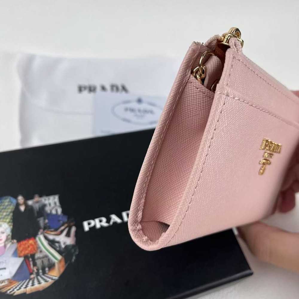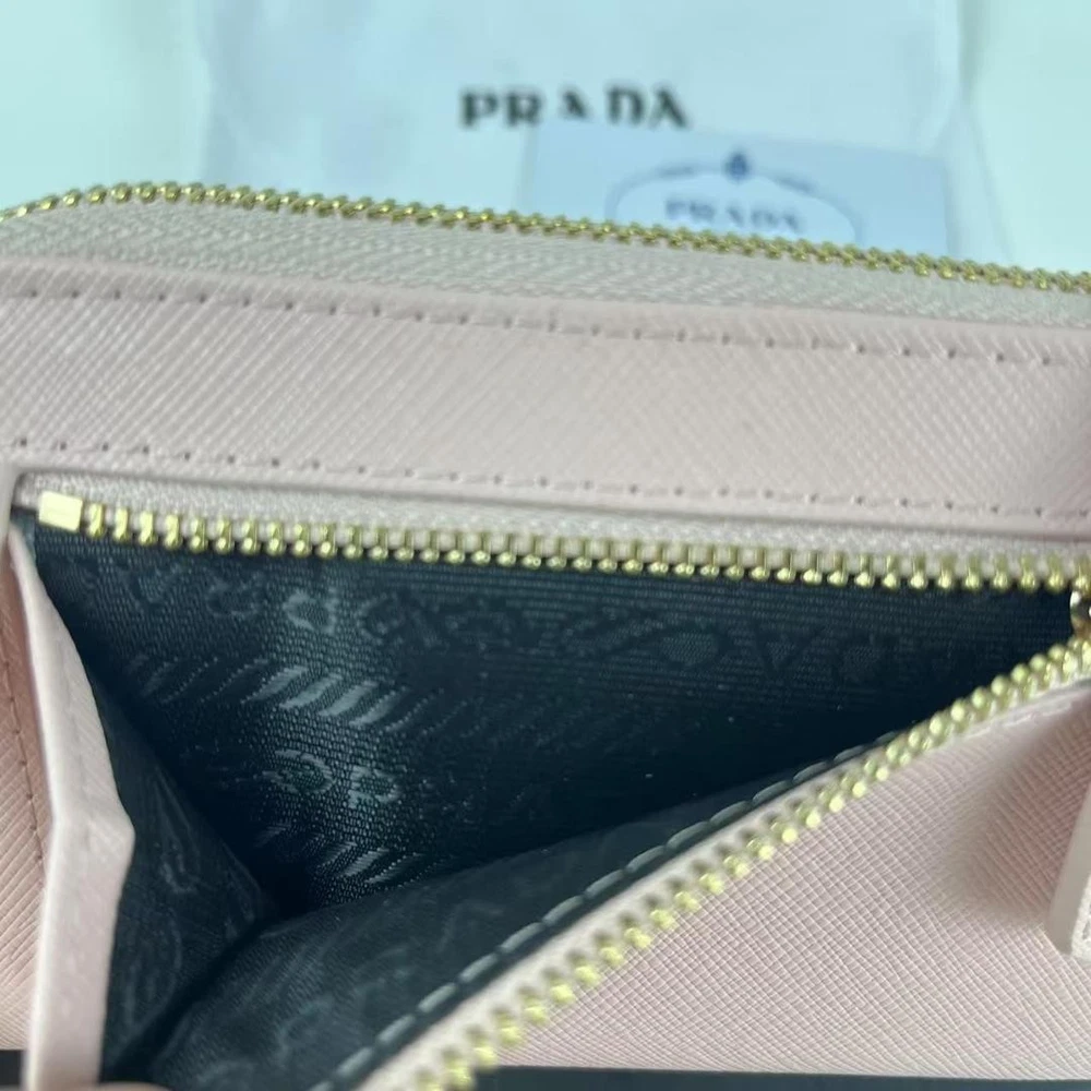 This Prada wallet is absolutely stunning! The soft pink leather is luxurious, and the bi-fold design is both stylish and practical with plenty of card slots. The craftsmanship is top-notch, and it fits perfectly in my bag. Shipping from Japan was smooth, and the seller provided great communication. A must-have for any Prada lover!