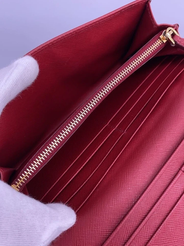 Absolutely love this stunning red Prada wallet! The quality is exceptional, it's surprisingly spacious, and the color is even more vibrant in person. Arrived perfectly packaged and feels so luxurious to use every day.