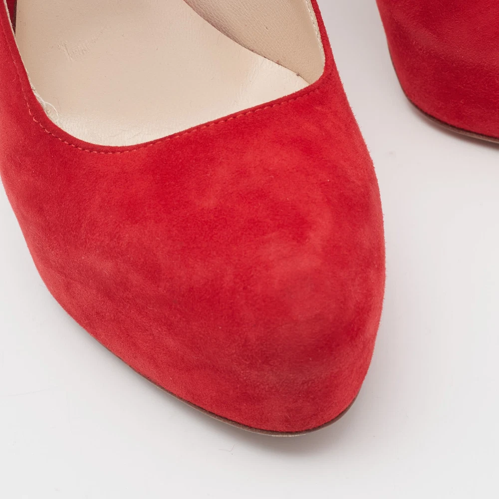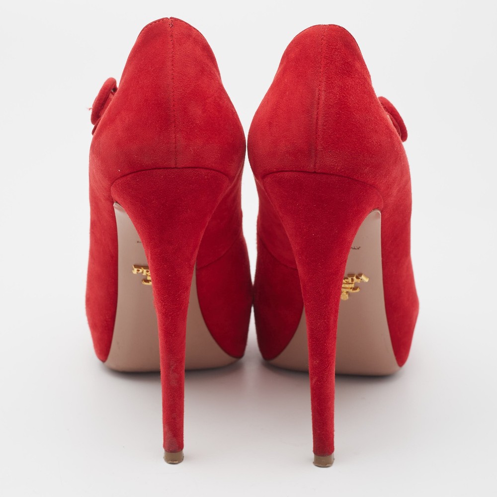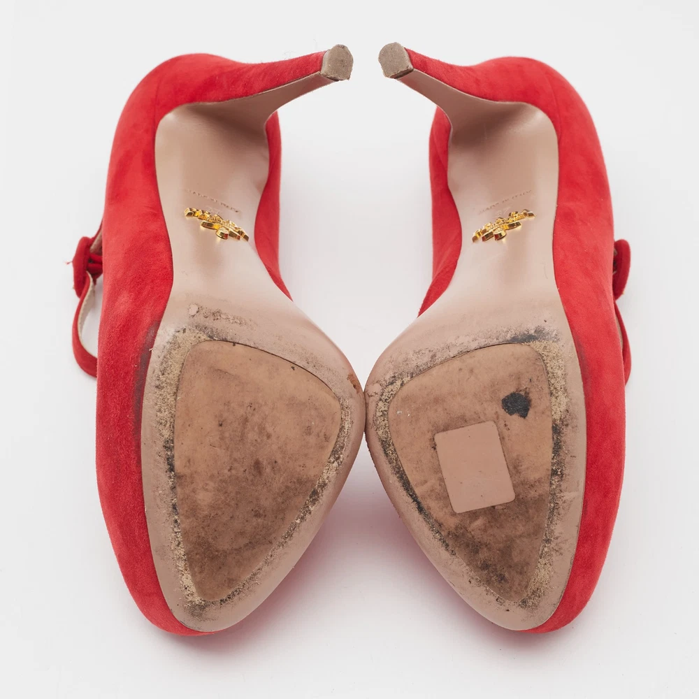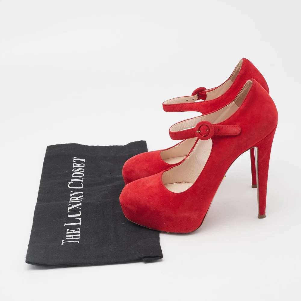 Prada Red Suede DOrsay Platform Pumps Size 37 EU