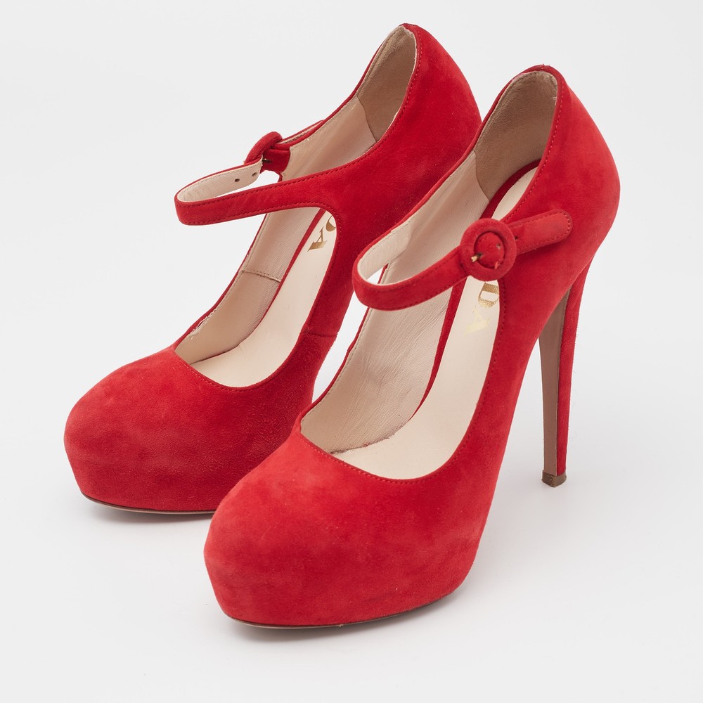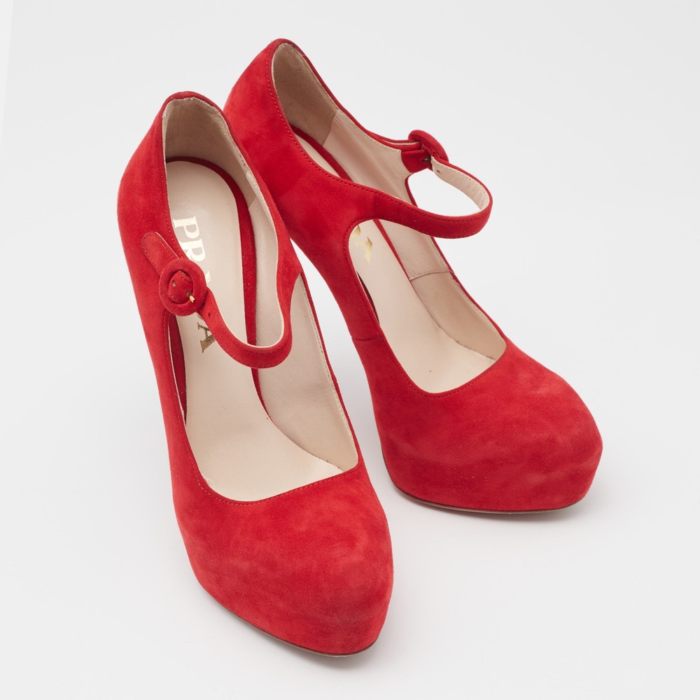 Discover footwear elegance with these Prada womens pumps. Meticulously designed, these heels marry fashion and comfort, ensuring you shine in every setting.Certified by The Luxury Closet - This item has gone through a detailed authentication process overseen by our experts. We offer a lifetime guarantee of authenticity on all our items. Import duties, taxes and charges are not included in the item price. These charges are the buyers responsibility. Please check with your country’s customs office to determine what these additional cost will be prior to buying. Our eBay Store About Us Contact Us Add to Favorite Sellers Prada Red Suede Platform D'orsay Pumps Size 37 $151.8 Discover footwear elegance with these Prada womens pumps. Meticulously designed, these heels marry fashion and comfort, ensuring you shine in every setting. Product Details Brand Color Red Dimensions Material Suede Size 37 Outsole Width 8 cm Outsole Length 20 cm Heel Height 14 cm Includes The Luxury Closet Packaging Certified by The Luxury Closet This item has gone through a detailed authentication process overseen by our experts. We offer a lifetime guarantee of authenticity on all our items. How We Check The in-house team of experts at The Luxury Closet is highly trained to verify the authenticity and the condition of the luxury products. They ensure that only 100% authentic items are put on sale.The evaluation process is unique with its own mix of assessment criteria and differs according to the category. Each item is evaluated based on the following combination of hallmarks, hardware, stitching, symmetry, material, craftsmanship, stamping, codes, hologram stickers, and packaging. Our authenticators also check if the items have been modified or amended (e.g., aftermarket diamonds, replaced batteries, repaired bags, etc.) International Buyers Import duties, taxes and charges are not included in the item price. These charges are the buyers responsibility. Please check with your country’s customs office to determine what these additional cost will be prior to buying.