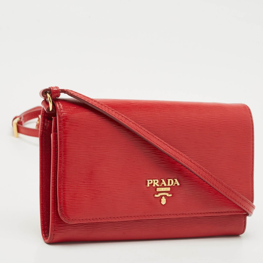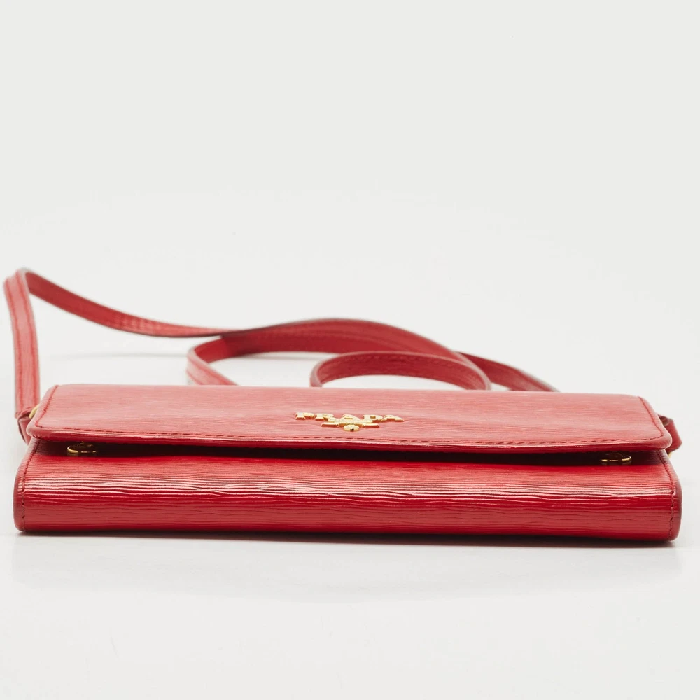 Streamlined and vibrant, this Prada wallet on strap is crafted in rich red Vitello Move leather for a refined texture. Equal parts wallet and mini bag, it’s ideal for days when you want to travel light—without compromising on iconic Italian elegance.Certified by The Luxury Closet - This item has gone through a detailed authentication process overseen by our experts. We offer a lifetime guarantee of authenticity on all our items. Import duties, taxes and charges are not included in the item price. These charges are the buyers responsibility. Please check with your country’s customs office to determine what these additional cost will be prior to buying. Our eBay Store About Us Contact Us Add to Favorite Sellers Prada Red Vitello Move Leather Wallet On Strap $631.4 Streamlined and vibrant, this Prada wallet on strap is crafted in rich red Vitello Move leather for a refined texture. Equal parts wallet and mini bag, it’s ideal for days when you want to travel light—without compromising on iconic Italian elegance. Product Details Brand Color Red Dimensions Material Leather Size Medium Outsole Width Outsole Length Heel Height Includes Certified by The Luxury Closet This item has gone through a detailed authentication process overseen by our experts. We offer a lifetime guarantee of authenticity on all our items. How We Check The in-house team of experts at The Luxury Closet is highly trained to verify the authenticity and the condition of the luxury products. They ensure that only 100% authentic items are put on sale.The evaluation process is unique with its own mix of assessment criteria and differs according to the category. Each item is evaluated based on the following combination of hallmarks, hardware, stitching, symmetry, material, craftsmanship, stamping, codes, hologram stickers, and packaging. Our authenticators also check if the items have been modified or amended (e.g., aftermarket diamonds, replaced batteries, repaired bags, etc.) International Buyers Import duties, taxes and charges are not included in the item price. These charges are the buyers responsibility. Please check with your country’s customs office to determine what these additional cost will be prior to buying.