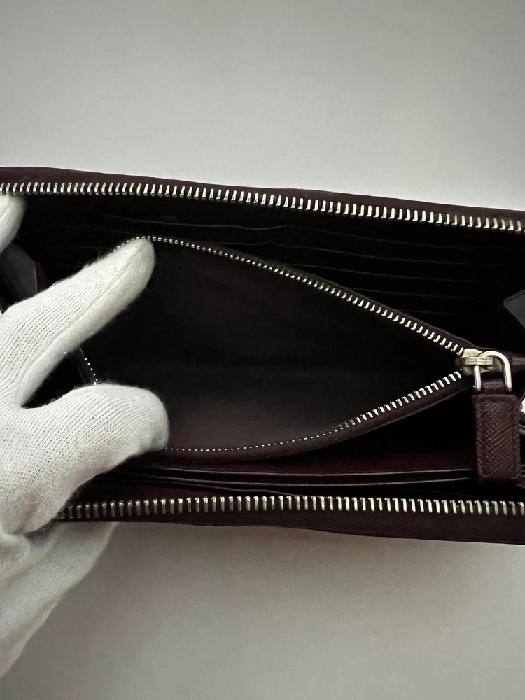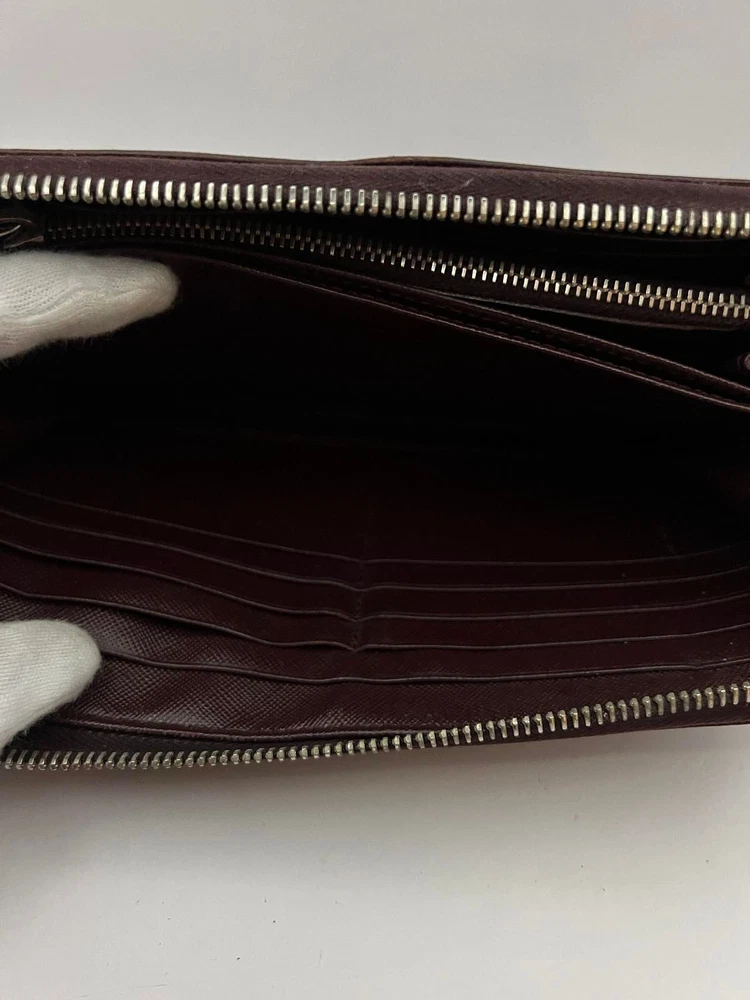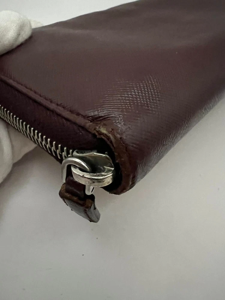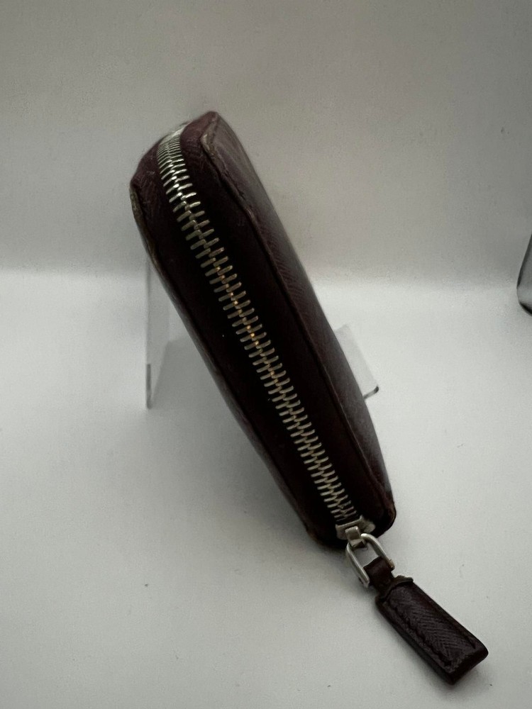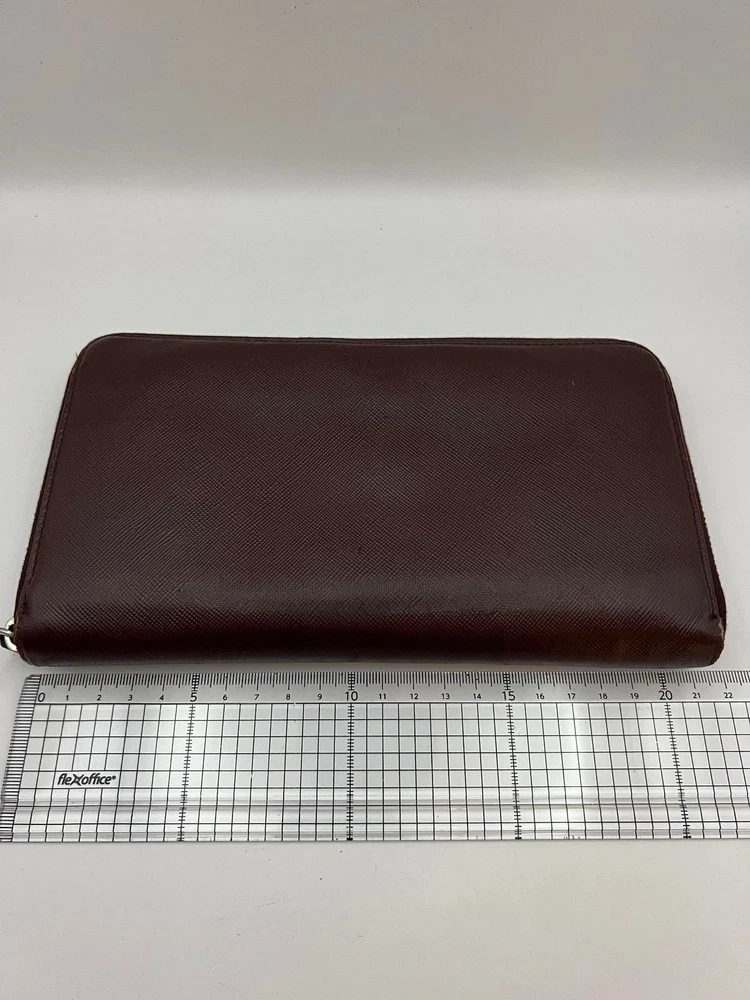 Love this stylish Prada wallet! The bold red leather looks amazing, and the round zip design is so unique. It's spacious yet compact, perfect for everyday use. Even though it's pre-owned, the quality is still top-notch—just minor wear that adds character. Super fast shipping from Japan, packed securely. A fantastic deal for a luxury piece!