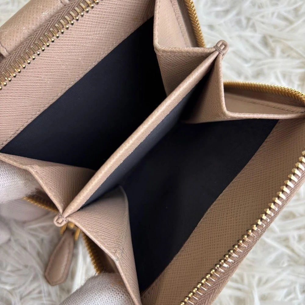 This Prada Saffiano wallet is a sleek and timeless piece! The beige leather looks elegant, and the logo hardware adds a luxurious touch. Despite being used, it’s in great condition—only a small repair on the coin pocket. Compact yet spacious, it fits cards and cash perfectly. A must-have for any Prada lover!