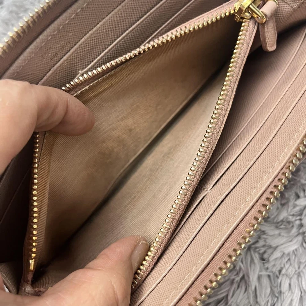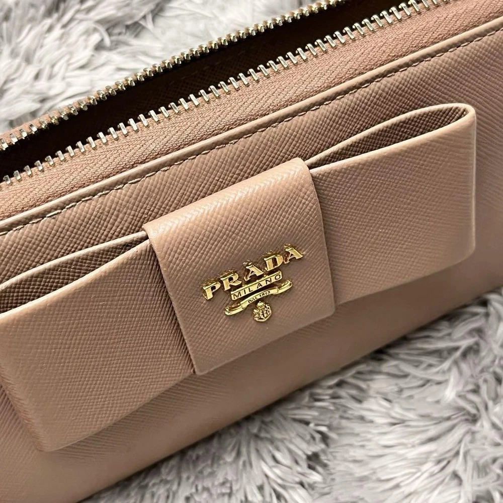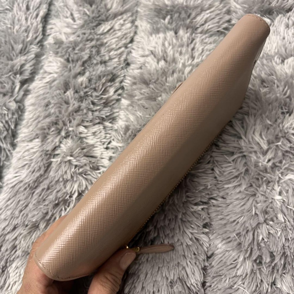Prada Saffiano Leather Long Wallet Beige Zipper Bifold Used Key Features - Brand: Prada - Product Type: Round Zip Wallet with Ribbon and Saffiano Line - Model: Not specified - Color: Beige with strong pink-beige tone - Size: approximately 10 cm (3.9 inches) high x 19 cm (7.5 inches) wide x 2.5 cm (1 inch) depth - Condition: Used, cleaned, with repaired surface and accordion flaps; minor interior dirt; zipper flaps show slight wear; coin pocket has dirt; overall good condition with no major scratches or damage; logo is clean. - Additional info: Water-repellent coating applied; color close to original; no accessories included unless noted. - Please read all condition details carefully. If you have questions, ask before purchasing. Specifications Brand Prada Country Japan Color Beige Material Leather Product Description Item Title Prada L-Shaped Zipper Long Wallet Saffiano Metal Logo Beige Payment Supports managed payments Please pay within 5 days after auction is finished. About Us We are located in Japan. It's our pleasure to make you happy by proposing our recommend item. If you have any questions or request about items, please feel free to ask us. International Buyers - Please Note: -Import duties, taxes, and charges are not included in the item price or shipping charges. These charges are the buyer's responsibility. -Please check with your country's customs office to determine what these additional costs will be prior to bidding/buying. -These charges are normally collected by the delivering freight (shipping) company or when you pick the item up - do not confuse them for additional shipping charges. -We do not mark merchandise values below value or mark items as - gifts - The US and International government regulations prohibit such behavior. Thank you for your understanding.