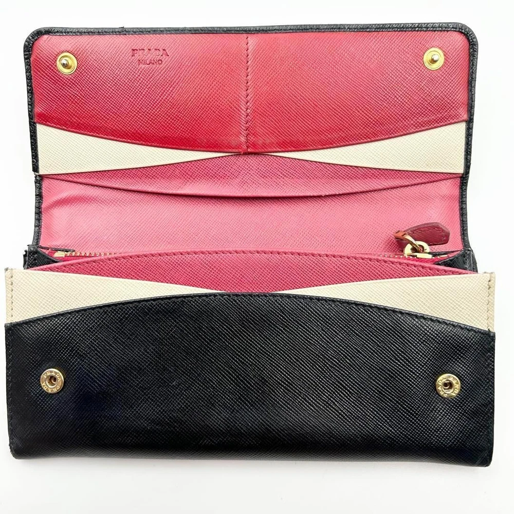 Prada Bicolor Saffiano Leather Long Wallet Bi-Fold Black with Box Key Features - Brand: PRADA - Product: Long Wallet / Long Wallet - Model: Saffiano Leather Bicolor (Black & Pink) - Material: Genuine leather - Color: Black and Pink - Size: approximately 10cm (3.9 inches) in height, 19cm (7.5 inches) in width, 2cm (0.8 inches) in depth - Features: - 1 bill compartment - 10 card pockets - 1 coin pocket - 2 open pockets - Condition: Used, near excellent (BC SS), with minimal signs of use, no noticeable scratches or stains - Notes: No accessories are included unless noted in the title or product description. If you have any questions, please ask before purchasing. Specifications Brand Prada Country Japan Color Black Material Leather Theme Box Product Description Item Title Rare Prada Long Wallet, Bi-Fold, Bicolor, Saffiano Leather, Black, With Gift Box Payment Supports managed payments Please pay within 5 days after auction is finished. About Us We are located in Japan. It's our pleasure to make you happy by proposing our recommend item. If you have any questions or request about items, please feel free to ask us. International Buyers - Please Note: -Import duties, taxes, and charges are not included in the item price or shipping charges. These charges are the buyer's responsibility. -Please check with your country's customs office to determine what these additional costs will be prior to bidding/buying. -These charges are normally collected by the delivering freight (shipping) company or when you pick the item up - do not confuse them for additional shipping charges. -We do not mark merchandise values below value or mark items as - gifts - The US and International government regulations prohibit such behavior. Thank you for your understanding.