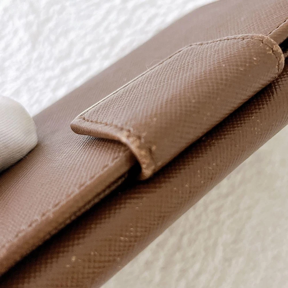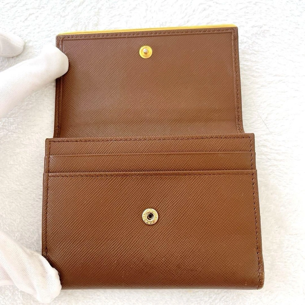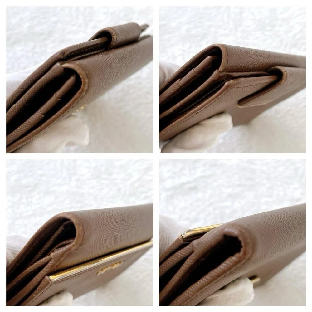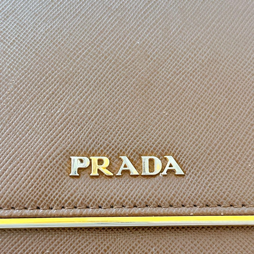 Prada Saffiano Bifold Wallet Brown Gold Leather Unisex Used Key Features - Brand: Prada - Product: Saffiano Leather Bifold Wallet - Color: Brown with Gold accents - Material: Genuine leather - Size: approximately 4.84 inches (12.3 cm) wide x 3.54 inches (9 cm) high x 0.59 inches (1.5 cm) deep - Features: Button closure, 1 coin pocket, 1 bill compartment, 7 card slots - Condition: Used, with minor scratches and tarnishing on logo hardware; overall good condition with signs of use - Notes: Please understand this is a pre-owned item. No accessories are included unless noted. If you have any questions, please ask before purchasing. Specifications Brand Prada Country Japan Color Brown Material Leather Product Description Item Title Prada Saffiano Bifold Wallet Brown Gold Dual Unisex Payment Supports managed payments Please pay within 5 days after auction is finished. About Us We are located in Japan. It's our pleasure to make you happy by proposing our recommend item. If you have any questions or request about items, please feel free to ask us. International Buyers - Please Note: -Import duties, taxes, and charges are not included in the item price or shipping charges. These charges are the buyer's responsibility. -Please check with your country's customs office to determine what these additional costs will be prior to bidding/buying. -These charges are normally collected by the delivering freight (shipping) company or when you pick the item up - do not confuse them for additional shipping charges. -We do not mark merchandise values below value or mark items as - gifts - The US and International government regulations prohibit such behavior. Thank you for your understanding.