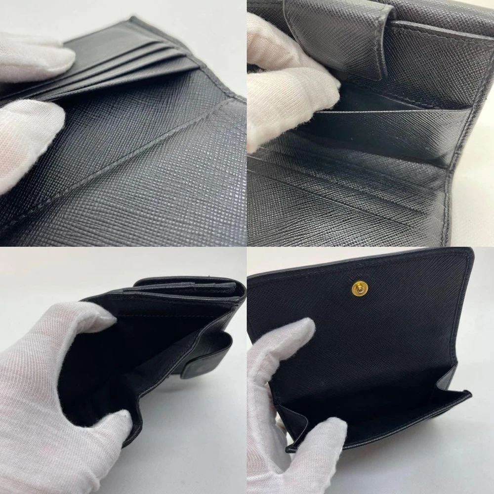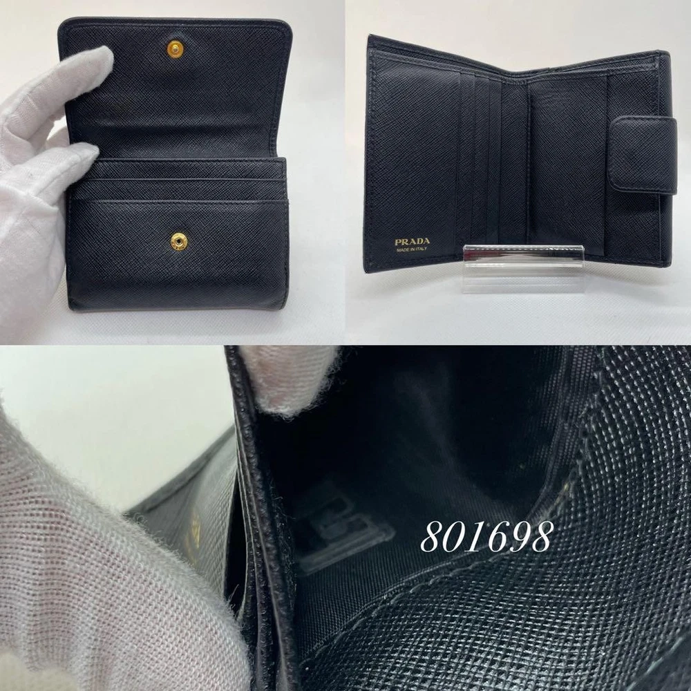 Prada Bifold Wallet Saffiano Leather Black Compact Coin Purse Used Key Features - Brand: Prada - Product Type: Compact Wallet / Bifold Wallet - Model: Saffiano Leather Wallet - Features: - Color: Black - Material: Saffiano Leather - Size: approximately 3.74 inches (9.5cm) in height, 4.92 inches (12.5cm) in width, 0.79 inches (2cm) in depth - Design: Logo embossed, gold hardware, multiple card slots, coin pocket, bill compartment, free pockets - Condition: Vintage, minimal visible wear, cleaned and sanitized, ready for use - Notes: - Authentic Prada product purchased from a reputable recycled shop - No accessories are included unless noted in the title or product description - Please ask questions before purchasing - Packaged simply, shipped within 1-2 days; delays possible due to work commitments Specifications Brand Prada Country Japan Color Black Material Leather Product Description Item Title Prada Bifold Wallet Compact Coin Purse Saffiano Leather Black No Box Payment Supports managed payments Please pay within 5 days after auction is finished. About Us We are located in Japan. It's our pleasure to make you happy by proposing our recommend item. If you have any questions or request about items, please feel free to ask us. International Buyers - Please Note: -Import duties, taxes, and charges are not included in the item price or shipping charges. These charges are the buyer's responsibility. -Please check with your country's customs office to determine what these additional costs will be prior to bidding/buying. -These charges are normally collected by the delivering freight (shipping) company or when you pick the item up - do not confuse them for additional shipping charges. -We do not mark merchandise values below value or mark items as - gifts - The US and International government regulations prohibit such behavior. Thank you for your understanding.