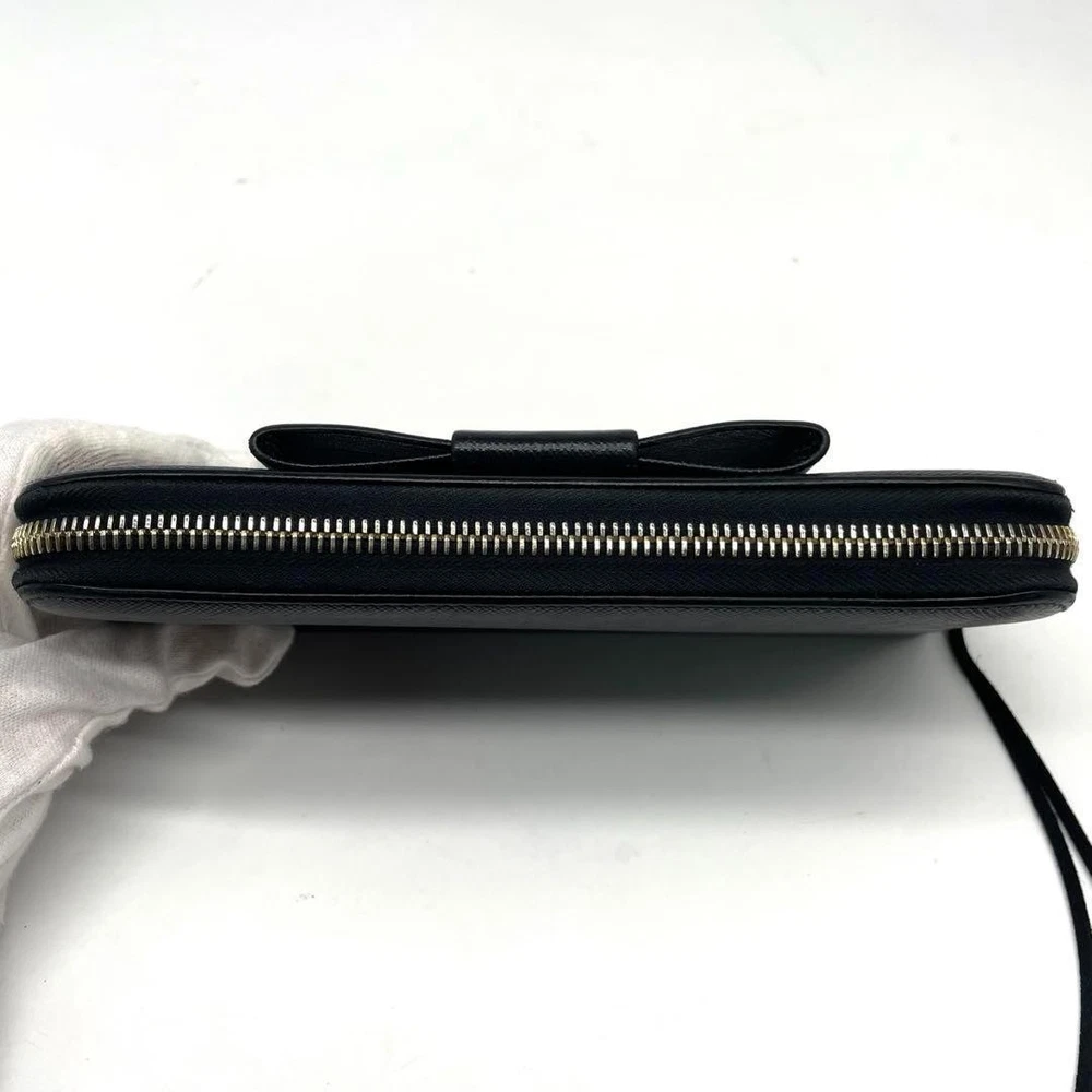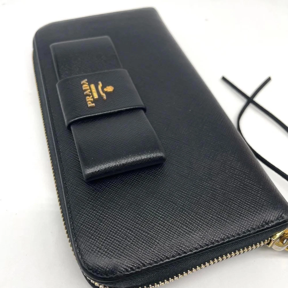 Prada Saffiano Leather Wallet Round Zip Black Long Purse Used Key Features - Brand: Prada - Product Type: Long Wallet / Long Wallet - Model: Saffiano Leather with Ribbon, Round Zip, Gold Logo - Features: Black leather, saffiano texture, ribbon detail, round zipper, gold logo - Size: approximately 7.87 inches (20cm) wide x 3.94 inches (10cm) high - Condition: Excellent used condition; zipper pull replaced with aftermarket part; minor signs of use, no noticeable scratches or stains - Notes: All items purchased from trusted domestic suppliers and inspected for authenticity. If counterfeit or fake items are found, we will offer an exchange. No accessories are included unless noted in the title or product description. Please ask questions before purchasing. Specifications Brand Prada Country Japan Color Black Material Leather Product Description Item Title Prada Long Wallet Saffiano Ribbon Round Zip Black Payment Supports managed payments Please pay within 5 days after auction is finished. About Us We are located in Japan. It's our pleasure to make you happy by proposing our recommend item. If you have any questions or request about items, please feel free to ask us. International Buyers - Please Note: -Import duties, taxes, and charges are not included in the item price or shipping charges. These charges are the buyer's responsibility. -Please check with your country's customs office to determine what these additional costs will be prior to bidding/buying. -These charges are normally collected by the delivering freight (shipping) company or when you pick the item up - do not confuse them for additional shipping charges. -We do not mark merchandise values below value or mark items as - gifts - The US and International government regulations prohibit such behavior. Thank you for your understanding.