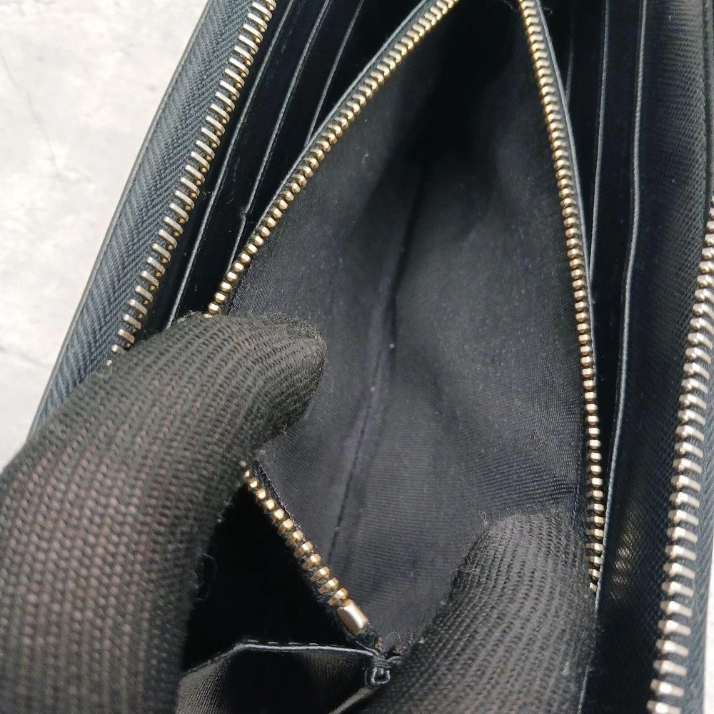 This Prada Saffiano wallet is a sleek and timeless piece—perfect for everyday elegance. The black leather with gold accents looks luxurious, and the compact size fits cards and cash neatly. The smooth zipper closure keeps everything secure, and the durable saffiano leather shows no wear. A must-have for anyone who loves designer quality without the bulk!