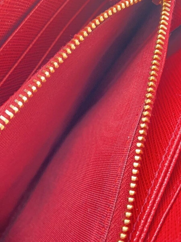 This Prada wallet is absolutely stunning! The rich red Saffiano leather is luxurious and durable, while the round zipper design adds a unique touch. It's spacious yet compact, perfect for everyday use. The craftsmanship is impeccable, and the color is vibrant. Shipping from Japan was smooth, and no extra duties were charged. Highly recommend for anyone looking for a stylish, high-quality wallet!