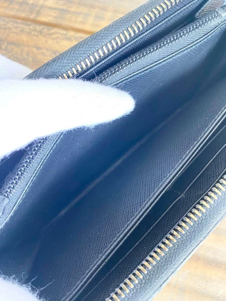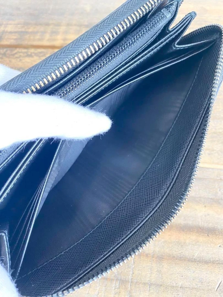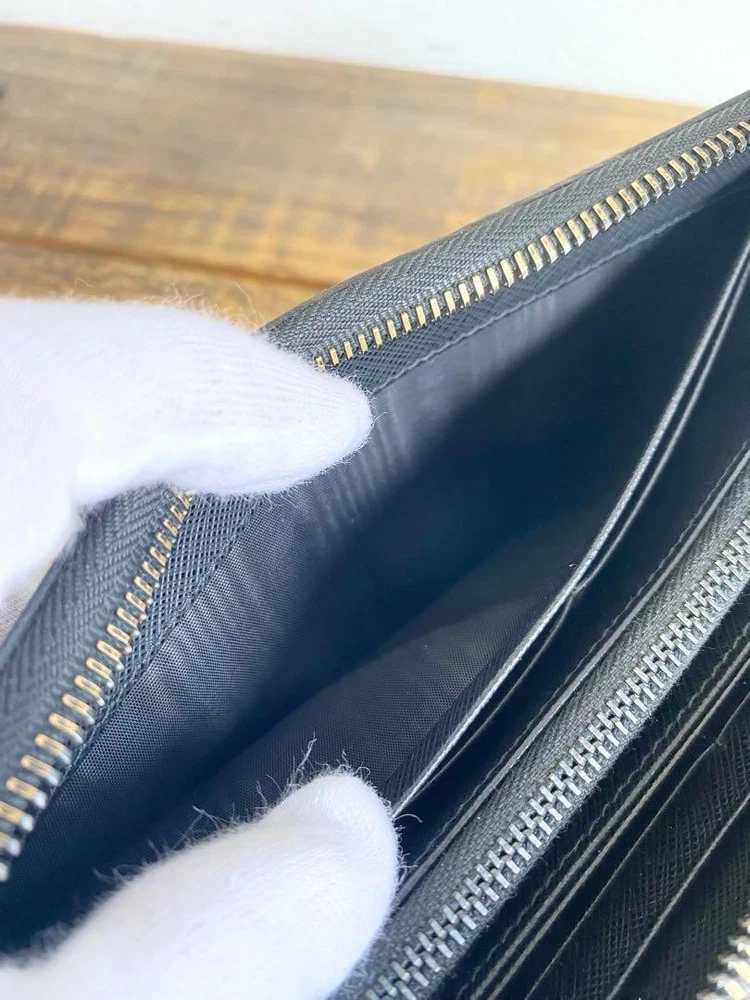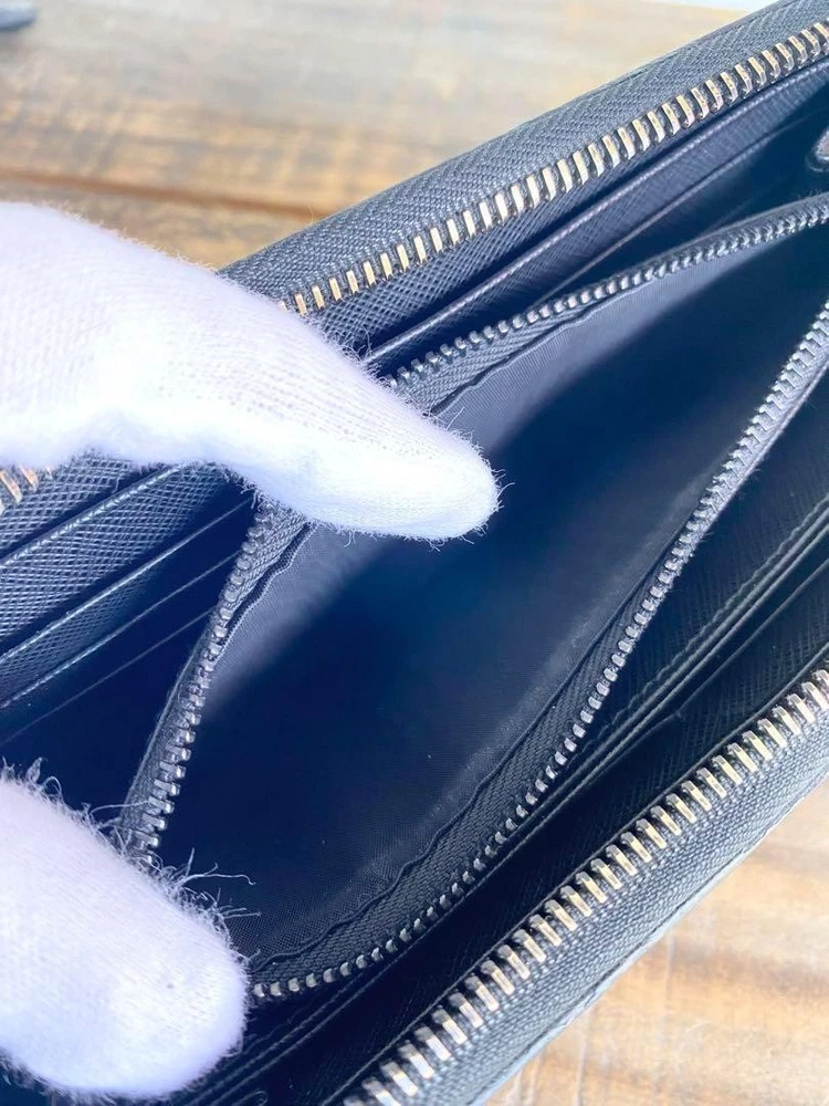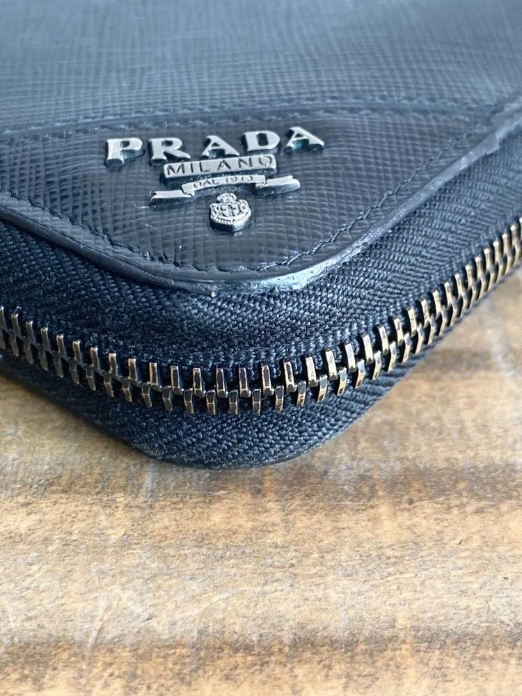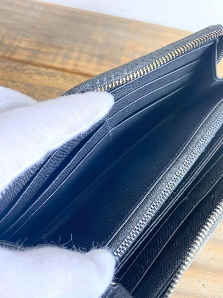 Prada Saffiano Leather Wallet Round Zipper Card Holder Key Features - Prada round zipper long wallet, model 2ML317 - Features elegant saffiano leather with subtle Prada logo in the corner, exuding understated luxury - Interior includes 3 compartments, 3 open pockets, 1 zippered pocket, and 12 card slots - Made of high-quality cowhide leather with metal logo detail - Dimensions: approximately 7.87 inches (20 cm) high, 4.06 inches (10.3 cm) wide, 0.98 inches (2.5 cm) thick - Condition: AB – light usage with minor scratches, edge wear, and small stains inside coin pocket; no significant damage or functional issues - No accessories are included unless noted in the title or product description. If you have any questions, please ask before purchasing. Specifications Brand Prada Country Japan Material Leather Product Description Item Title 2Ml317 Prada Saffiano Leather Round Zipper Wallet Payment Supports managed payments Please pay within 5 days after auction is finished. About Us We are located in Japan. It's our pleasure to make you happy by proposing our recommend item. If you have any questions or request about items, please feel free to ask us. International Buyers - Please Note: -Import duties, taxes, and charges are not included in the item price or shipping charges. These charges are the buyer's responsibility. -Please check with your country's customs office to determine what these additional costs will be prior to bidding/buying. -These charges are normally collected by the delivering freight (shipping) company or when you pick the item up - do not confuse them for additional shipping charges. -We do not mark merchandise values below value or mark items as - gifts - The US and International government regulations prohibit such behavior. Thank you for your understanding.