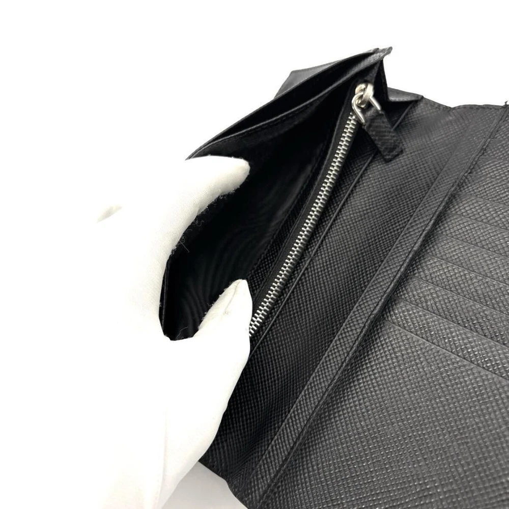 This Prada Saffiano wallet is sleek and stylish—the black leather with silver logo looks so elegant! The quality is amazing, and even though it's pre-owned, it's in near-perfect condition. Spacious enough for cards and cash, yet compact. A great luxury find!