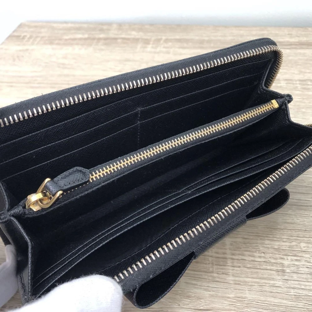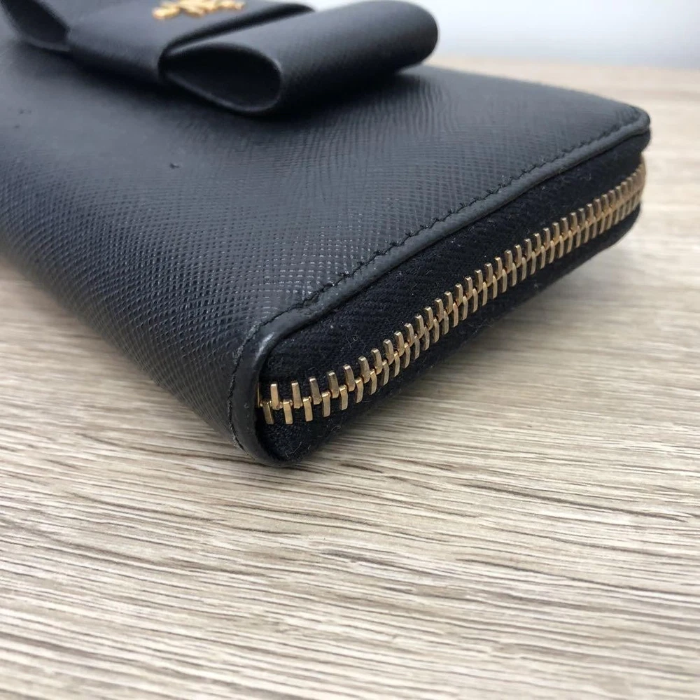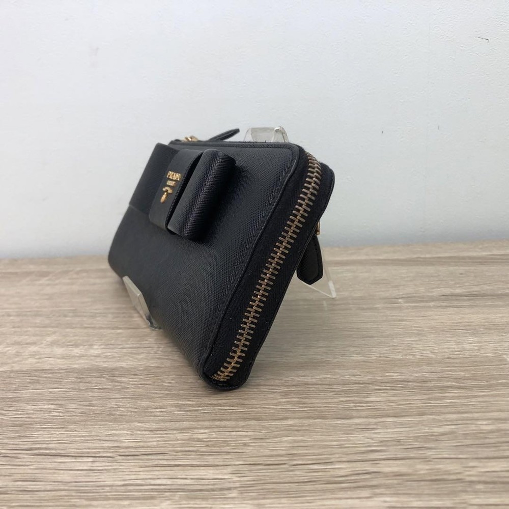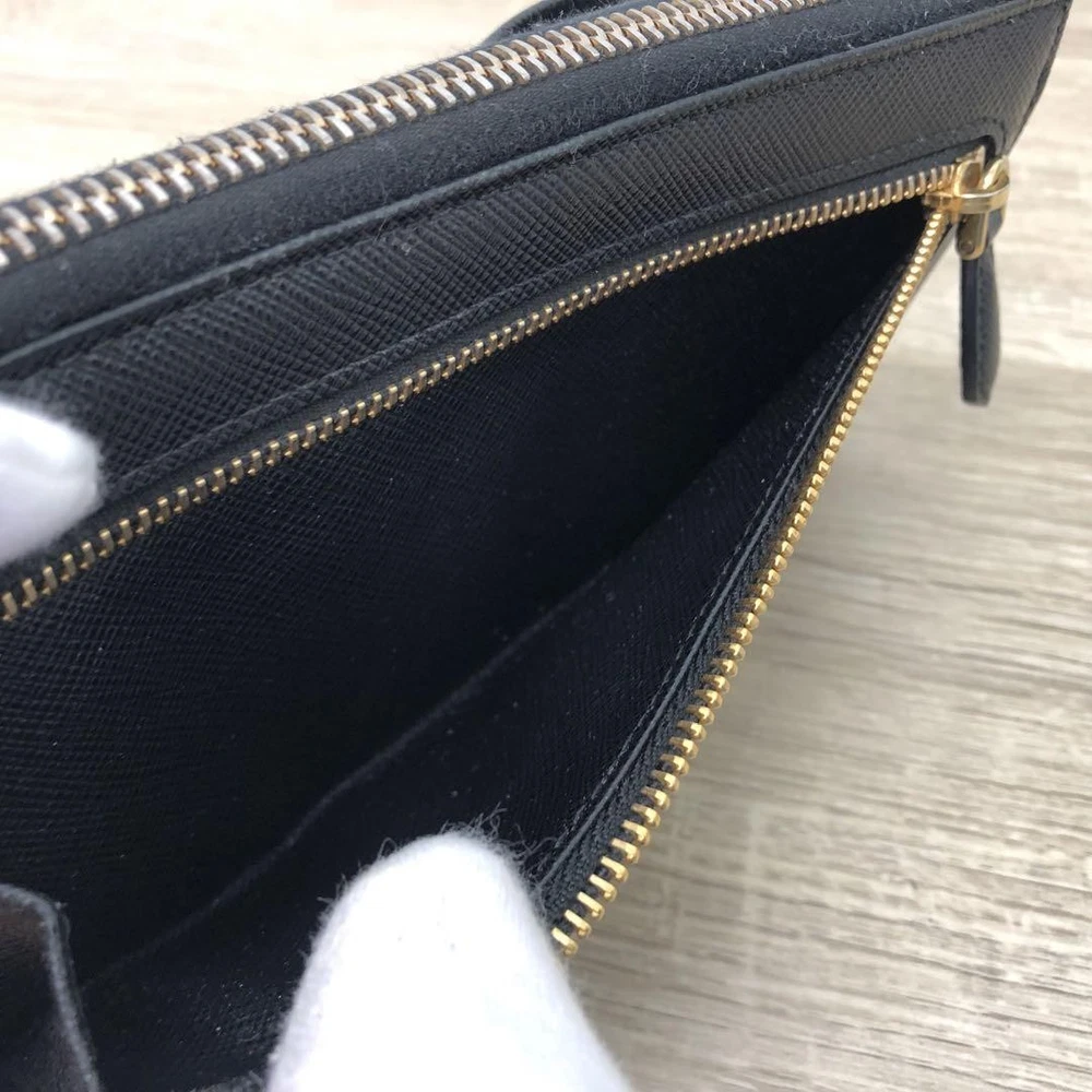 Prada Saffiano Ribbon Black Leather Wallet Zip Around 12G Coins Cash Card Used Key Features - Brand: Prada - Product: Long Zip Wallet with Saffiano Leather and Ribbon - Features: L-shaped zipper closure, 12G - Exterior: Zipper pocket - Interior: Coin pocket, 2 bill compartments, 8 card slots, 2 additional pockets - Color: Black - Material: Leather - Size: approximately 7.9 inches W x 3.7 inches H x 1.6 inches D - Condition: Minor scuffs on corners, coin pocket shows minimal dirt, overall good condition. Comes with box but no guarantee. Please review photos for details. - No accessories are included unless noted in the title or product description. If you have any questions, please ask before purchasing. Specifications Brand Prada Country Japan Color Black Material Leather Theme Coins Product Description Item Title Prada Wallet Saffiano Ribbon Black Leather Payment Supports managed payments Please pay within 5 days after auction is finished. About Us We are located in Japan. It's our pleasure to make you happy by proposing our recommend item. If you have any questions or request about items, please feel free to ask us. International Buyers - Please Note: -Import duties, taxes, and charges are not included in the item price or shipping charges. These charges are the buyer's responsibility. -Please check with your country's customs office to determine what these additional costs will be prior to bidding/buying. -These charges are normally collected by the delivering freight (shipping) company or when you pick the item up - do not confuse them for additional shipping charges. -We do not mark merchandise values below value or mark items as - gifts - The US and International government regulations prohibit such behavior. Thank you for your understanding.