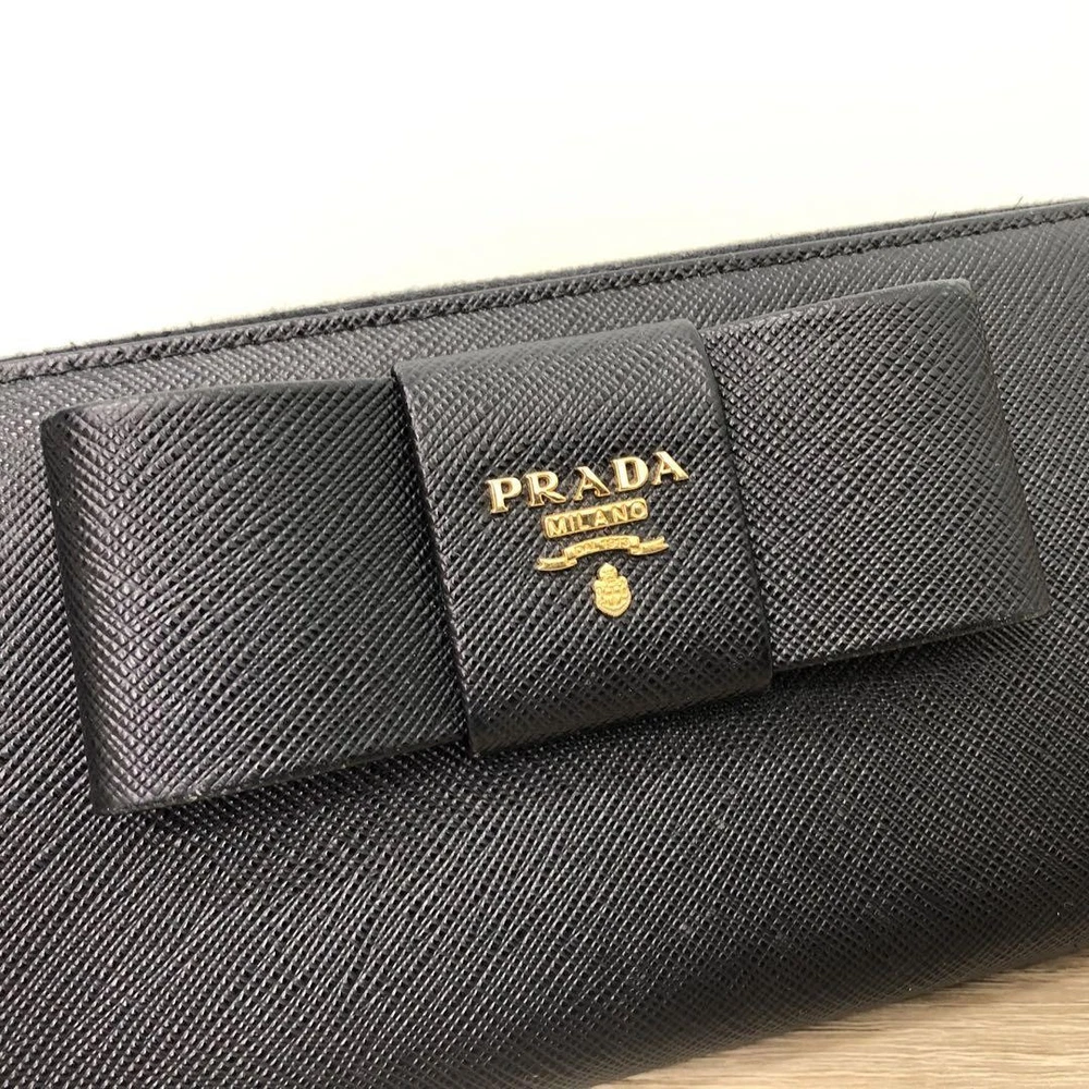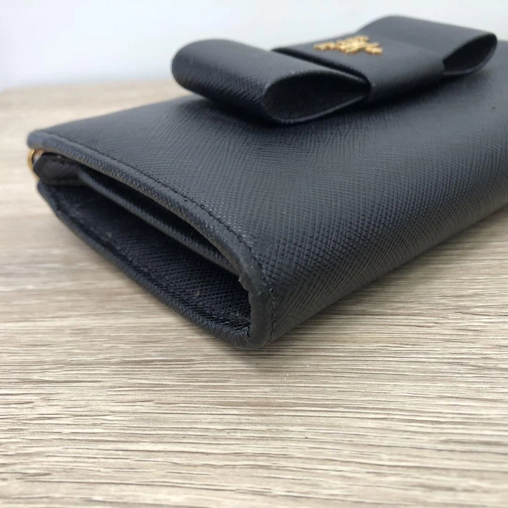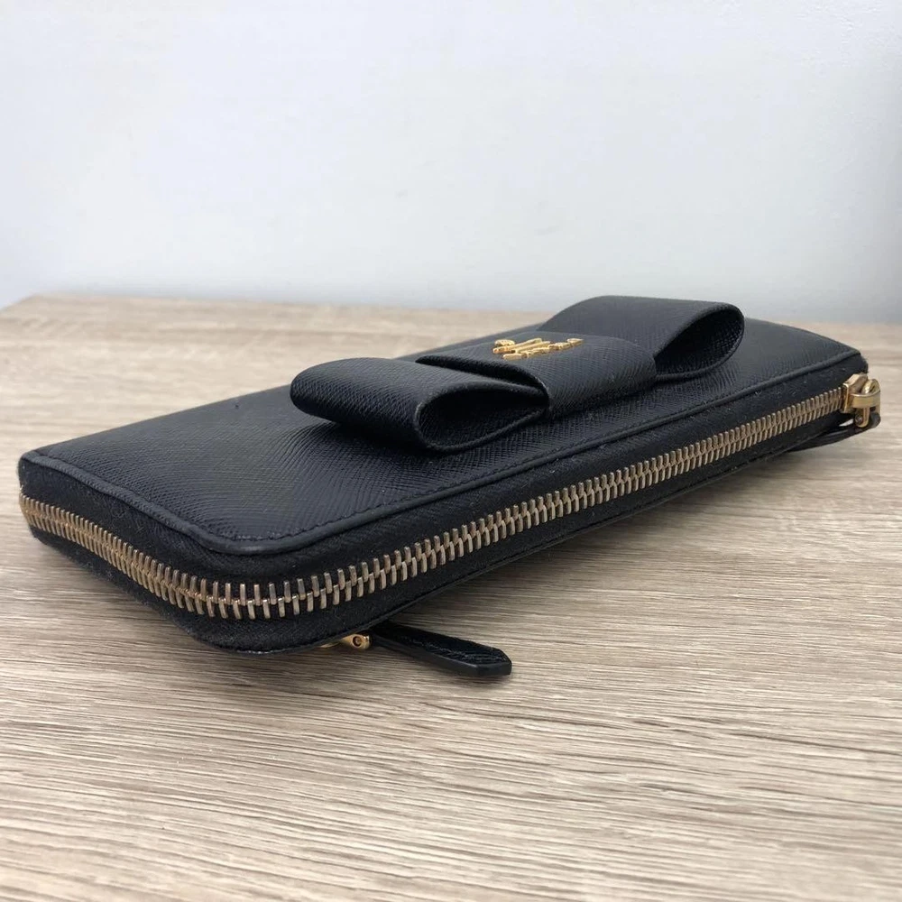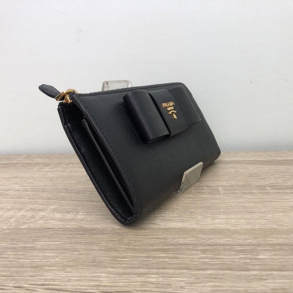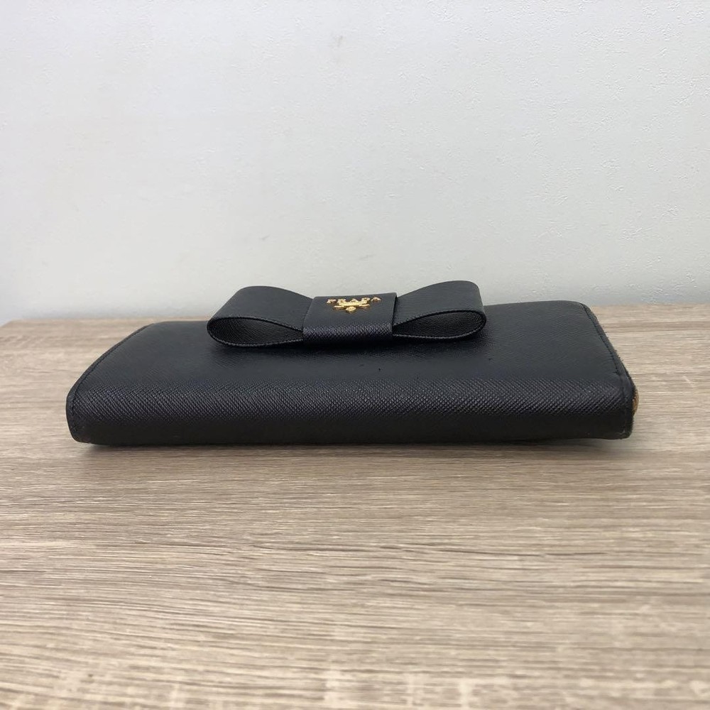 Prada Saffiano Ribbon Black Leather Wallet Zip Around 12G Coins Cash Card Used Key Features - Brand: Prada - Product: Long Zip Wallet with Saffiano Leather and Ribbon - Features: L-shaped zipper closure, 12G - Exterior: Zipper pocket - Interior: Coin pocket, 2 bill compartments, 8 card slots, 2 additional pockets - Color: Black - Material: Leather - Size: approximately 7.9 inches W x 3.7 inches H x 1.6 inches D - Condition: Minor scuffs on corners, coin pocket shows minimal dirt, overall good condition. Comes with box but no guarantee. Please review photos for details. - No accessories are included unless noted in the title or product description. If you have any questions, please ask before purchasing. Specifications Brand Prada Country Japan Color Black Material Leather Theme Coins Product Description Item Title Prada Wallet Saffiano Ribbon Black Leather Payment Supports managed payments Please pay within 5 days after auction is finished. About Us We are located in Japan. It's our pleasure to make you happy by proposing our recommend item. If you have any questions or request about items, please feel free to ask us. International Buyers - Please Note: -Import duties, taxes, and charges are not included in the item price or shipping charges. These charges are the buyer's responsibility. -Please check with your country's customs office to determine what these additional costs will be prior to bidding/buying. -These charges are normally collected by the delivering freight (shipping) company or when you pick the item up - do not confuse them for additional shipping charges. -We do not mark merchandise values below value or mark items as - gifts - The US and International government regulations prohibit such behavior. Thank you for your understanding.