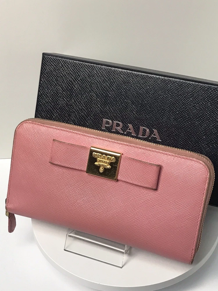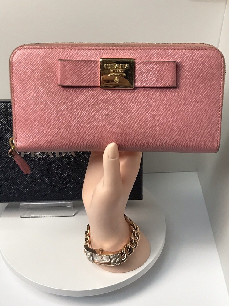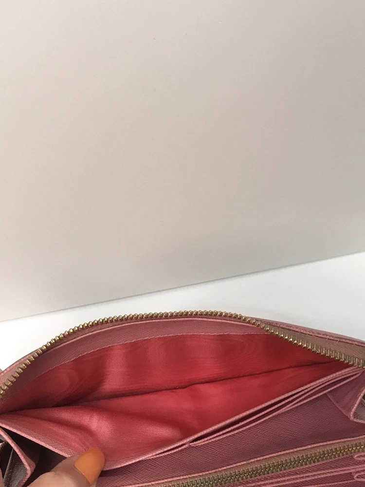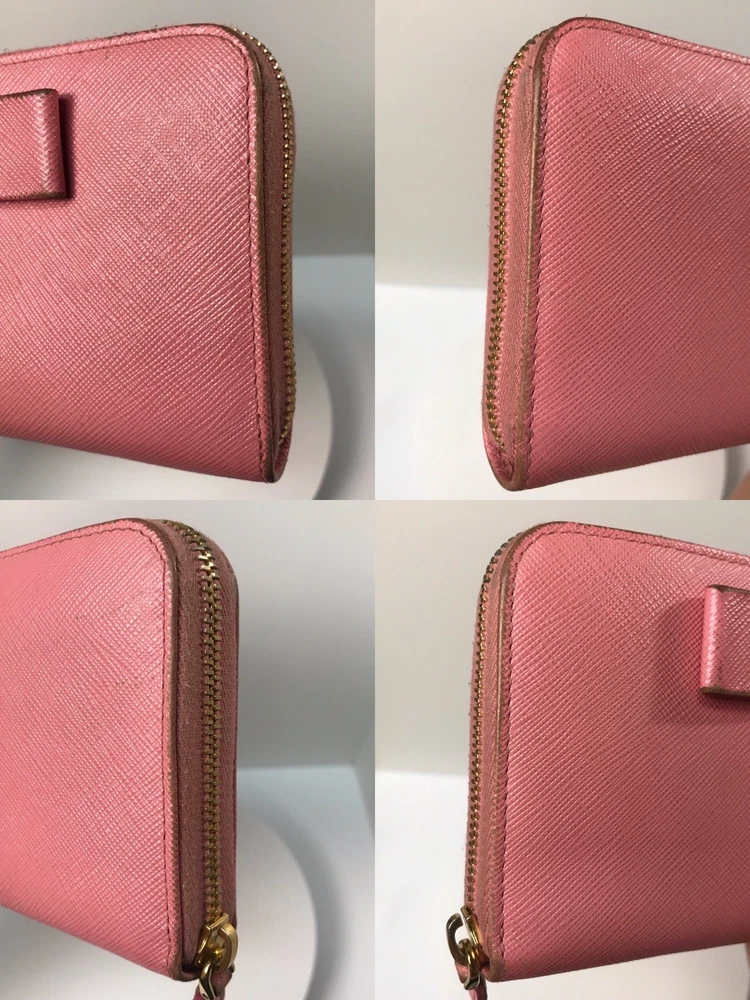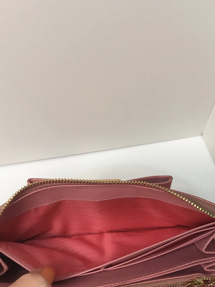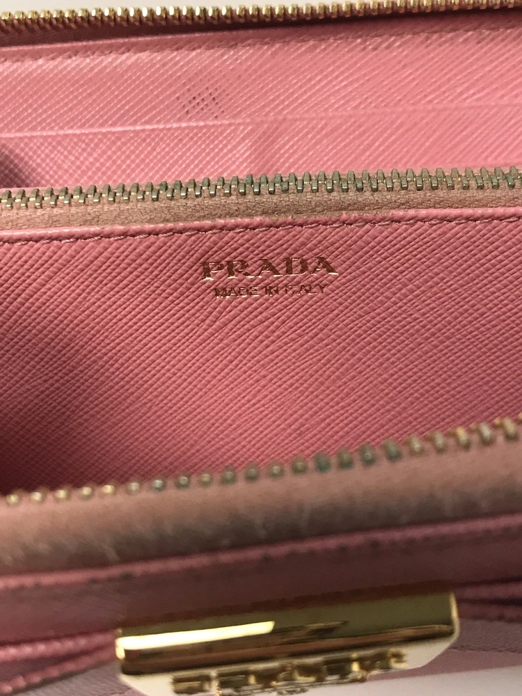 -Condition: Pre-owned ✅ ; in good condition -Comes with box ❤️ -Wear on corners/edges & zipper pull/ribbon; light coin residue/interior small marks -Color: Pink 💕 -Material: Saffiano Leather -PRADA 😍🔥 -Credit card slots -Separated Compartments -Gold Hardware -She’s simply a stunner!!! 🤩❤️🔥✨ -Reasonable offers are welcome 🤗