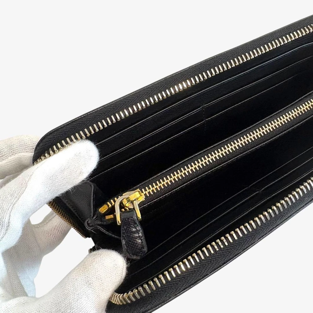 Prada Saffiano Long Wallet Black Zipper Authentic Key Features - Brand: Prada - Product Type: Long Wallet with Round Zipper - Model: Saffiano Leather Wallet - Features: Unisex black Saffiano leather wallet with round zipper closure, coin pocket, and spacious interior - Dimensions: approximately 4.13 inches (10.5 cm) tall, 7.87 inches (20 cm) wide, 1.18 inches (3 cm) depth - Condition: Very clean interior and exterior with no noticeable scratches or stains; overall excellent condition, with minor signs of age or wear possible - Material: Saffiano leather - Notes: No accessories are included unless noted in the title or product description. If you have any questions, please ask before purchasing. Specifications Brand Prada Country Japan Color Black Product Description Item Title Prada Saffiano Long Wallet Black Round Zipper Payment Supports managed payments Please pay within 5 days after auction is finished. About Us We are located in Japan. It's our pleasure to make you happy by proposing our recommend item. If you have any questions or request about items, please feel free to ask us. International Buyers - Please Note: -Import duties, taxes, and charges are not included in the item price or shipping charges. These charges are the buyer's responsibility. -Please check with your country's customs office to determine what these additional costs will be prior to bidding/buying. -These charges are normally collected by the delivering freight (shipping) company or when you pick the item up - do not confuse them for additional shipping charges. -We do not mark merchandise values below value or mark items as - gifts - The US and International government regulations prohibit such behavior. Thank you for your understanding.