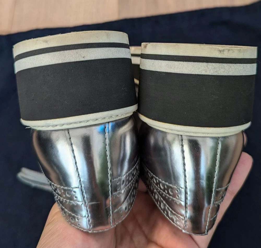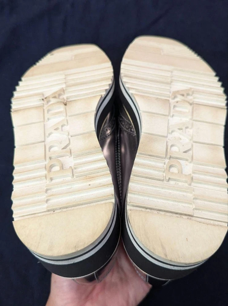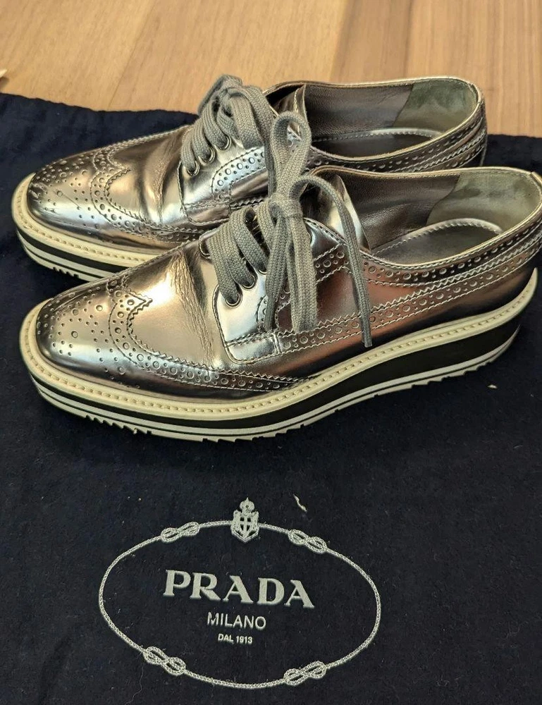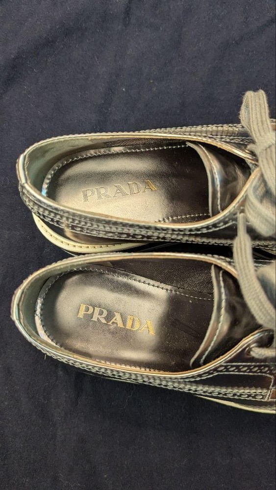 Prada Silver LaceUp Shoes Women's 22cm US 4.0 Condition /Used Key Features Prada Lace-Up Shoes, Size 35 (22cm), Silver. These stylish shoes feature a classic lace-up design with a silver exterior material. Please note there are some scuffs on the toe area, as shown in the photos. The shoes are stored at home and inspected manually, so minor imperfections may exist. They come with either Yu-Yu Mercari Bin or Rakuraku Mercari Bin for shipping, aiming for prompt delivery. Ideal for fashion-conscious individuals, these shoes are perfect for casual or formal occasions. Please understand that returns or cancellations are not accepted after purchase to prevent issues. Item Specifics: - Brand: Prada - Product Type: Shoes - Size: 22cm (Size 35) - Exterior Material: Silver - Department: Women - Closure: Lace-up - Condition: Used, with toe scuff - Color: Silver - Handmade: No - Country/Region of Manufacture: Japan Specifications Brand Prada Country Japan US Shoe Size 4 Department Woman UK Shoe Size 3.5 EU Shoe Size 34 JP Shoe Size 22 Product Description Item Title Men 4.0US Prada Lace-Up Shoes Sneakers 22Cm Payment Supports managed payments Please pay within 5 days after auction is finished. About Us We are located in Japan. It's our pleasure to make you happy by proposing our recommend item. If you have any questions or request about items, please feel free to ask us. International Buyers - Please Note: -Import duties, taxes, and charges are not included in the item price or shipping charges. These charges are the buyer's responsibility. -Please check with your country's customs office to determine what these additional costs will be prior to bidding/buying. -These charges are normally collected by the delivering freight (shipping) company or when you pick the item up - do not confuse them for additional shipping charges. -We do not mark merchandise values below value or mark items as - gifts - The US and International government regulations prohibit such behavior. Thank you for your understanding.