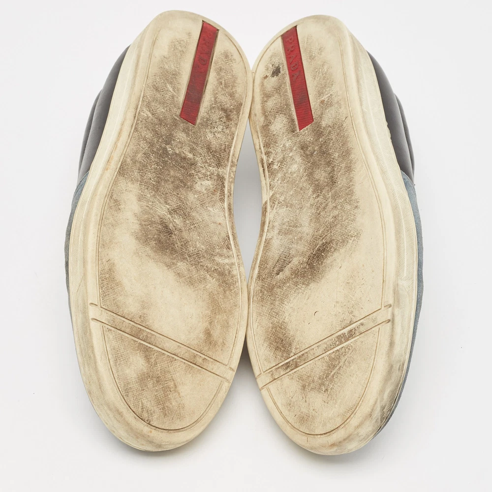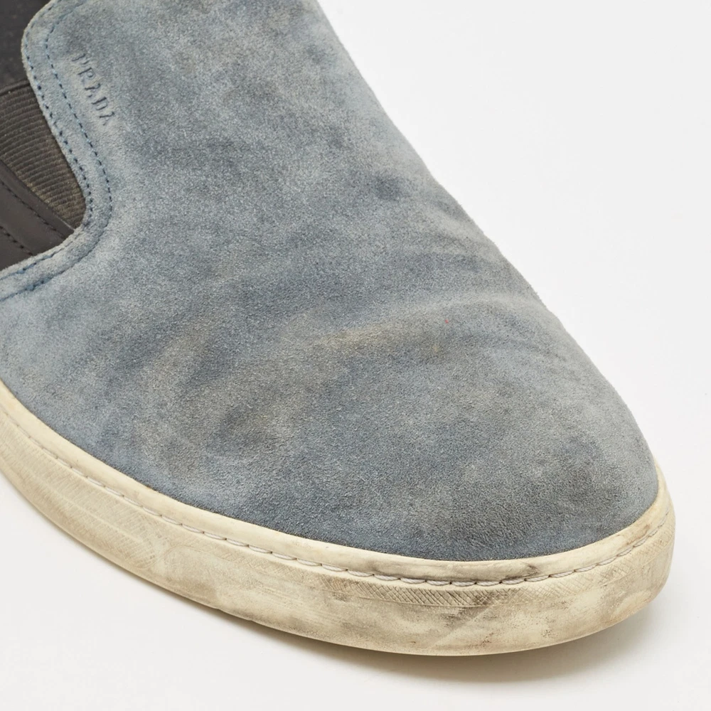 Designed to elevate your style quotient and give you comfort at the same time, these kicks are crafted using the best materials. Pair them with your casuals for a cool look.Certified by The Luxury Closet - This item has gone through a detailed authentication process overseen by our experts. We offer a lifetime guarantee of authenticity on all our items. Import duties, taxes and charges are not included in the item price. These charges are the buyers responsibility. Please check with your country’s customs office to determine what these additional cost will be prior to buying. Our eBay Store About Us Contact Us Add to Favorite Sellers Prada Sport Black/Blue Suede and Leather Slip On Sneakers Size 43 $151.8 Designed to elevate your style quotient and give you comfort at the same time, these kicks are crafted using the best materials. Pair them with your casuals for a cool look. Product Details Brand Color Black Dimensions Material Leather, Suede Size 43 Outsole Width 11 cm Outsole Length 30 cm Heel Height Includes The Luxury Closet Packaging Certified by The Luxury Closet This item has gone through a detailed authentication process overseen by our experts. We offer a lifetime guarantee of authenticity on all our items. How We Check The in-house team of experts at The Luxury Closet is highly trained to verify the authenticity and the condition of the luxury products. They ensure that only 100% authentic items are put on sale.The evaluation process is unique with its own mix of assessment criteria and differs according to the category. Each item is evaluated based on the following combination of hallmarks, hardware, stitching, symmetry, material, craftsmanship, stamping, codes, hologram stickers, and packaging. Our authenticators also check if the items have been modified or amended (e.g., aftermarket diamonds, replaced batteries, repaired bags, etc.) International Buyers Import duties, taxes and charges are not included in the item price. These charges are the buyers responsibility. Please check with your country’s customs office to determine what these additional cost will be prior to buying.