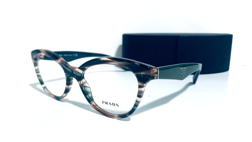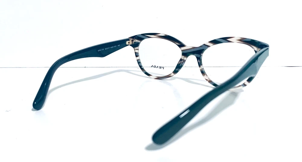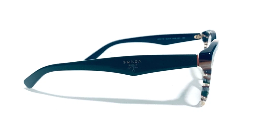 RACCOON STASH WELCOMES YOU! 100% Money Back Guarantee! NEW AUTHENTIC PRADA VPR 11R VAO-1O1 Transparent Striped Green Brown Top / Green Arms Cat Eye RX Eyeglasses Frame MADE IN ITALY Model: PRADA VPR 11R VAO-1O1 Color: Transparent Striped Green / Brown Lens Color: Clear RX Demo Size: 50-17-140 MM The frame is brand new, never used or worn! COMES WITH ORIGINAL PRADA CASE and PRADA Cleaning Cloth. All items are packaged carefully for shipping to prevent any damage during transportation. International Buyers - Please Note: Import duties, taxes, and charges are not included in the item price or shipping cost. These charges are the buyer's responsibility. Please check with your country's customs office to determine what these additional costs will be prior to bidding or buying. If you have any questions please feel free to ask. Thank you for choosing us for your optical needs! Item ID: RV 012_010