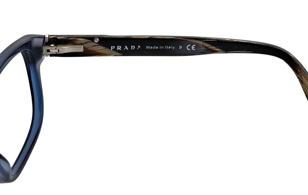 PRADA Model: VPR07P HA2-1O1 Size: 54mm 54-17-140 Frame Color: Blue Translucent, Brown Horn Frame Material: Acetate Made in Italy frames only no demo lenses, nice condition no issues