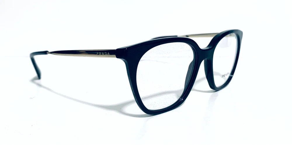 RACCOON STASH WELCOMES YOU! 100% Money Back Guarantee! NEW AUTHENTIC PRADA VPR 11T 1AB-1O1 Shiny Black Top / Gold Arms Cat Eye RX Eyeglasses Frame MADE IN ITALY Model: PRADA VPR 11T 1AB-1O1 Color: Black on Gold Lens Color: Clear RX Demo Size: 51-17-140 MM The frame is brand new, never used or worn! COMES WITH ORIGINAL PRADA CASE and Generic Cleaning Cloth. All items are packaged carefully for shipping to prevent any damage during transportation. International Buyers - Please Note: Import duties, taxes, and charges are not included in the item price or shipping cost. These charges are the buyer's responsibility. Please check with your country's customs office to determine what these additional costs will be prior to bidding or buying. If you have any questions please feel free to ask. Thank you for choosing us for your optical needs! Item ID: RV 010_087