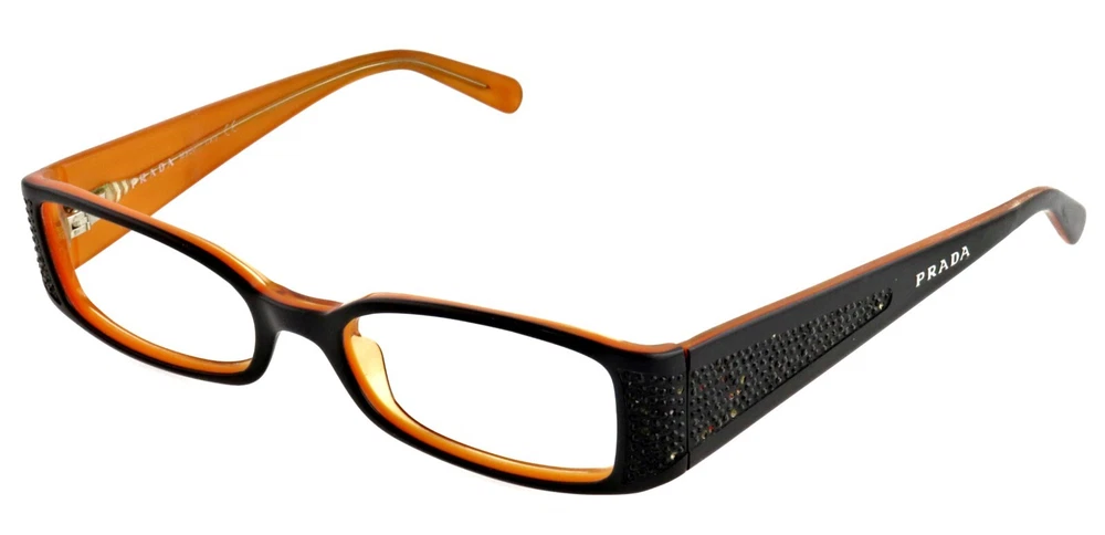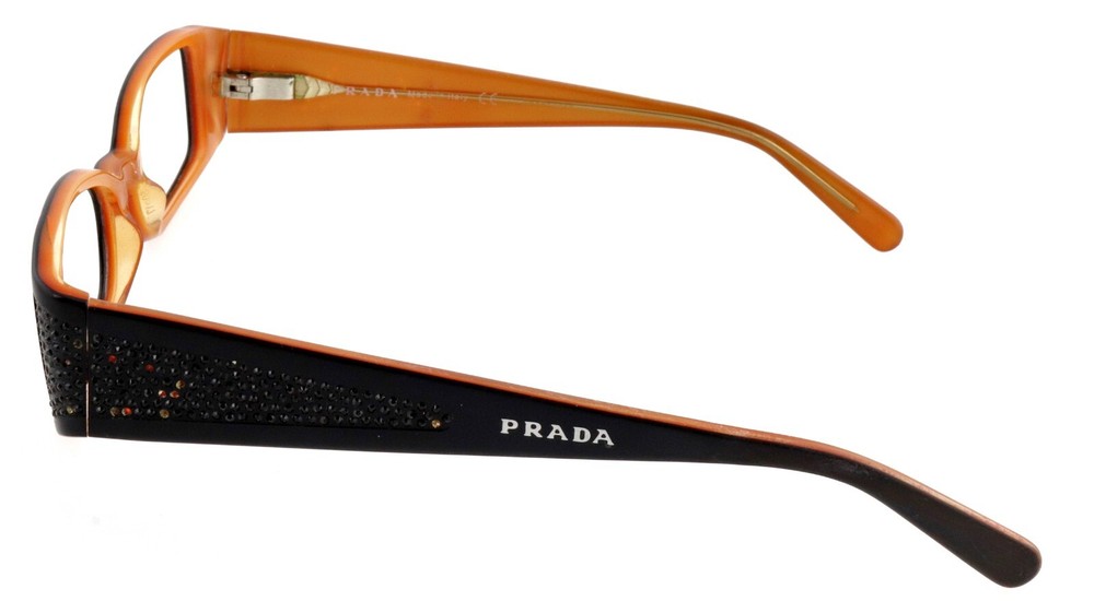PRADA Model: VPR19I 1AX -1O1 Size: 50mm 50-17-135 Frame Color: Black on Orange Frame Material: Acetate Made in Italy note some ornament stones, excellent condition otherwise