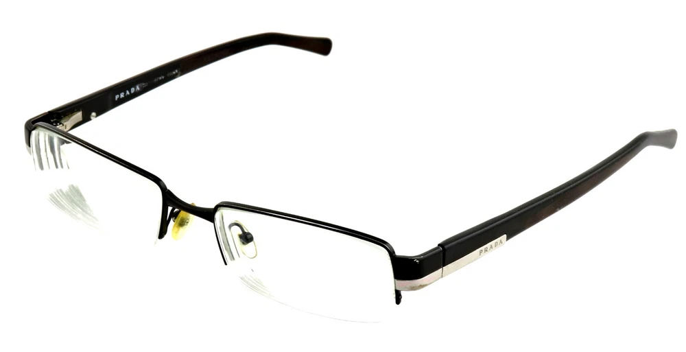 Prada SPR53D 5AV-7H1 59mm Gunmetal Half-Rim Eyeglass Frames Made in Italy