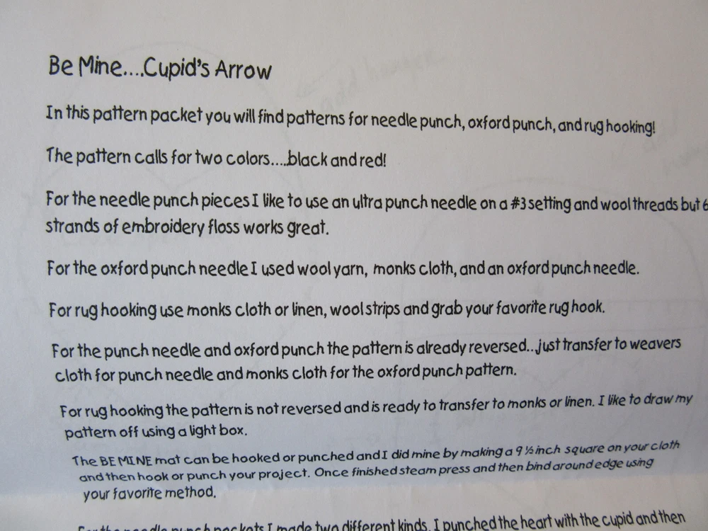 Prairie Moon Primitives Punchneedle Embroidery Pattern dated 2013 "Be Mine....Cupid's Arrow" Approx. finished size of design is 7" x 7" Includes paper design to trace & instructions only No other supplies included Many of these older patterns are out of print now