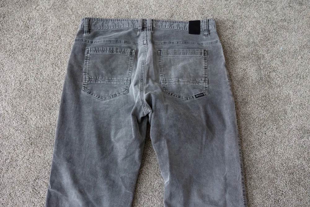 Elevate your everyday attire with the Prana Corduroy Pants, designed for the modern man who values both comfort and style. These sleek gray chinos feature a slim fit that contours with your movements, crafted from a cotton blend fabric that promises durability and a gentle stretch for all-day ease. With a versatile straight leg cut and a low-rise waist, these pants are ideal for a range of occasions, from business meetings to casual weekend outings. Attention to detail is evident in the pants' construction with a flat front, zip and button closure, and a classic 5-pocket design for practicality. The logo accent adds a touch of designer charm, while the machine-washable fabric ensures effortless care. Whether paired with a crisp shirt for work or a cozy sweater for fall, these pants are set to be a go-to in your wardrobe.