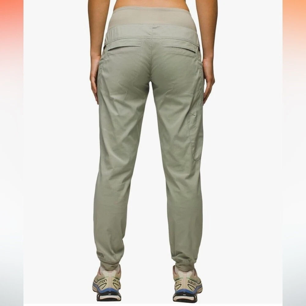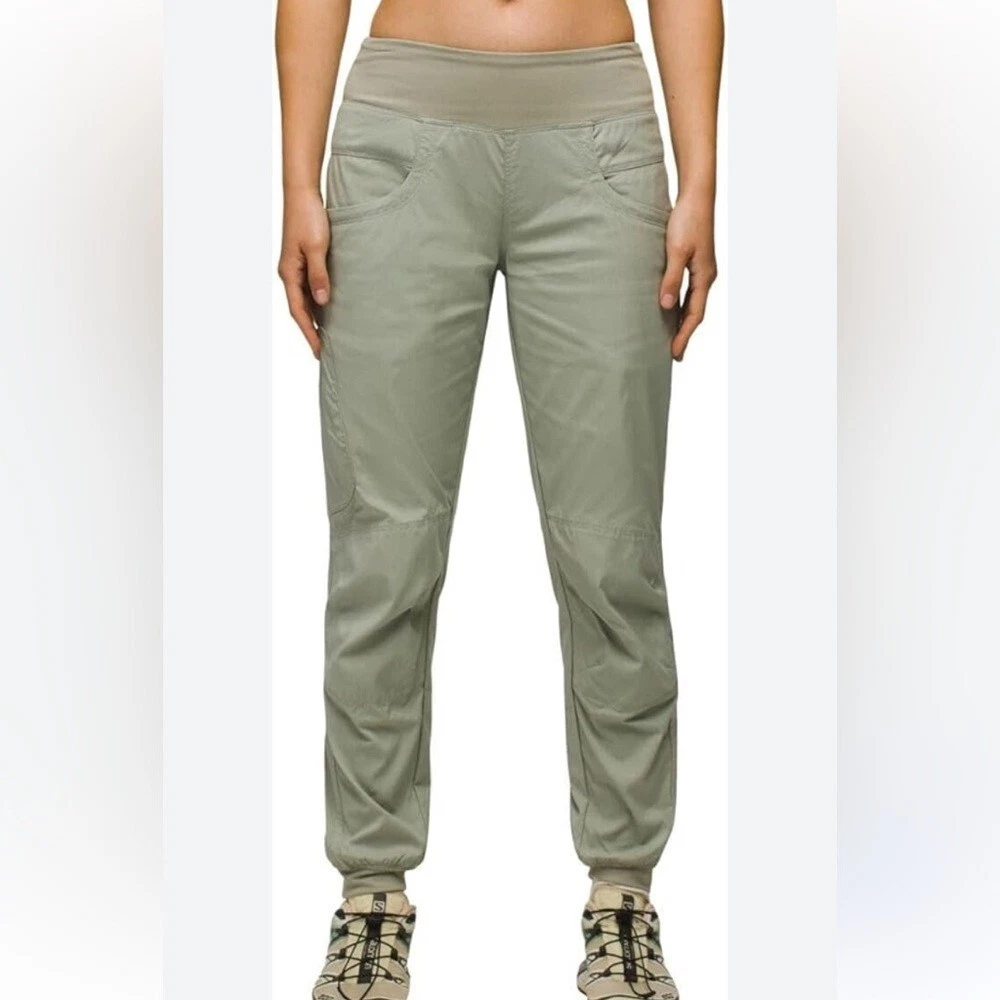 Department: Women Fit: Regular Material: Cotton Blend Season: Fall, Spring, Summer, Winter Inseam: 28 in Fabric Type: Canvas Handmade: No Size: M Personalize: No Accents: Logo Brand: prAna Type: Pants Color: Green Pattern: Solid Closure: Pull On Leg Style: Tapered Rise: Mid (8.5-10.5 in) Features: Breathable, Comfort, Cuffed, Elastic Waist, Lightweight, Pockets, Stretch Theme: Nature, Sports, Hiking, Outdoor, Climbing, Gorpcore Model: Prana Kanab Country/Region of Manufacture: China Garment Care: Machine Washable Style: Jogger Vintage: No Size Type: Regular Occasion: Casual, Travel, Workwear