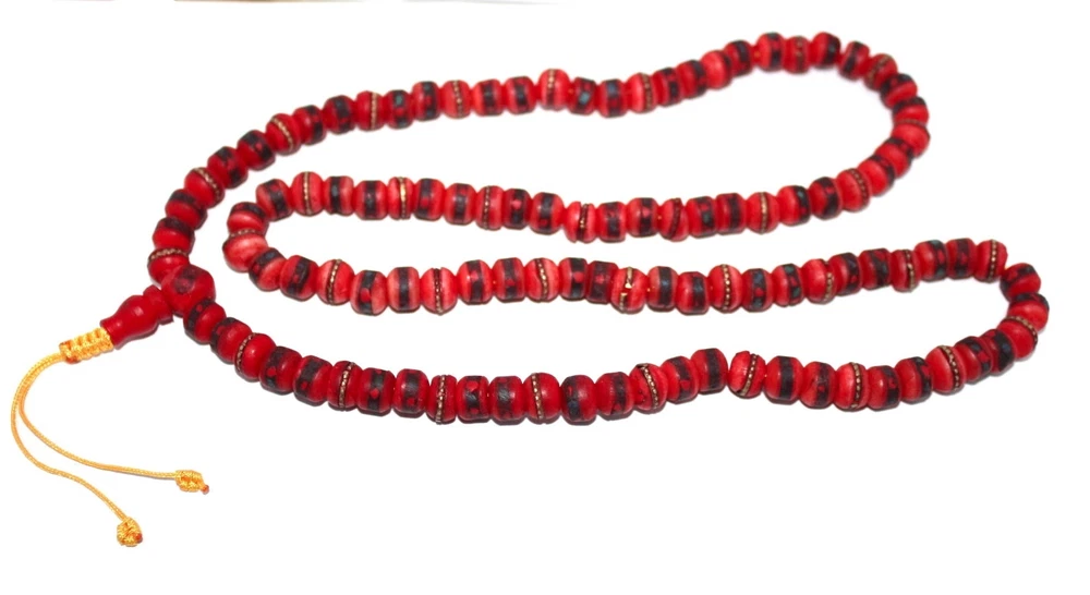 Adjustable wrist mala bracelet This listing is for a Domesticated Bos Grunniens yak bone mala Necklace Prayer beads for meditation. The Measurement of Each embedded bead is 6mm-8 mm. This prayer beads necklace is Handmade in the United States by us (Tibetannepalesejejwelry) Prayer Mala or beads are usually used by all religions around the world such as Hinduism, Buddism, Catholicism, Islam, Sikhism. Since the beads are fingered in an automatic manner, they allow the user to keep track of how many prayers have been said with a minimal amount of conscious effort, which in turn allows greater attention to be paid to the prayers themselves. Circumference of the Mala when fully closed is 28 inches