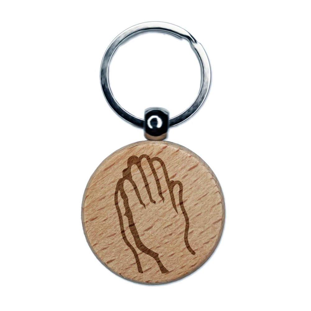 Praying Hands Engraved Wood Round Keychain Tag Charm