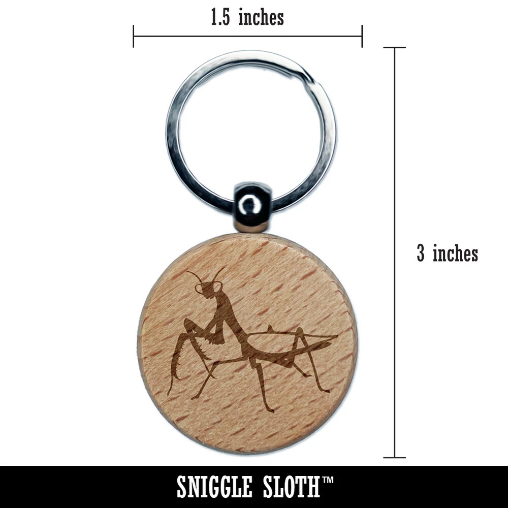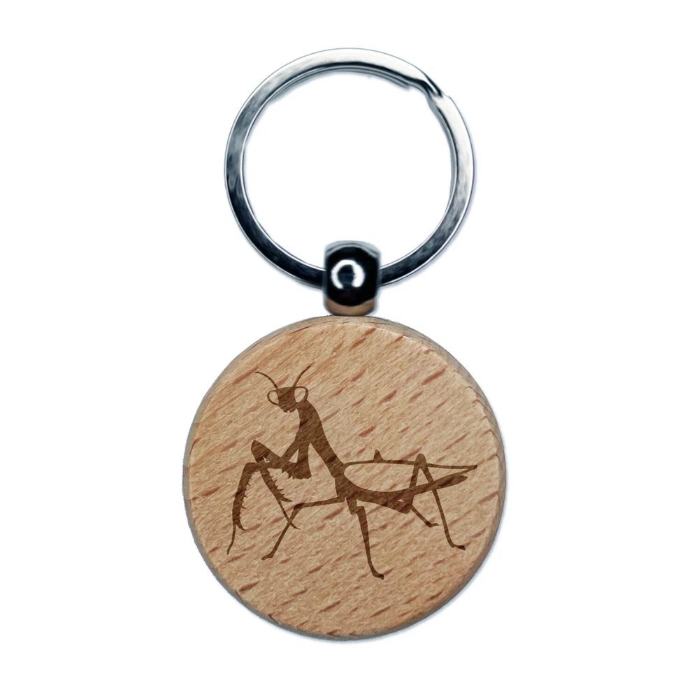 Praying Mantis Insect Engraved Wood Round Keychain Tag Charm