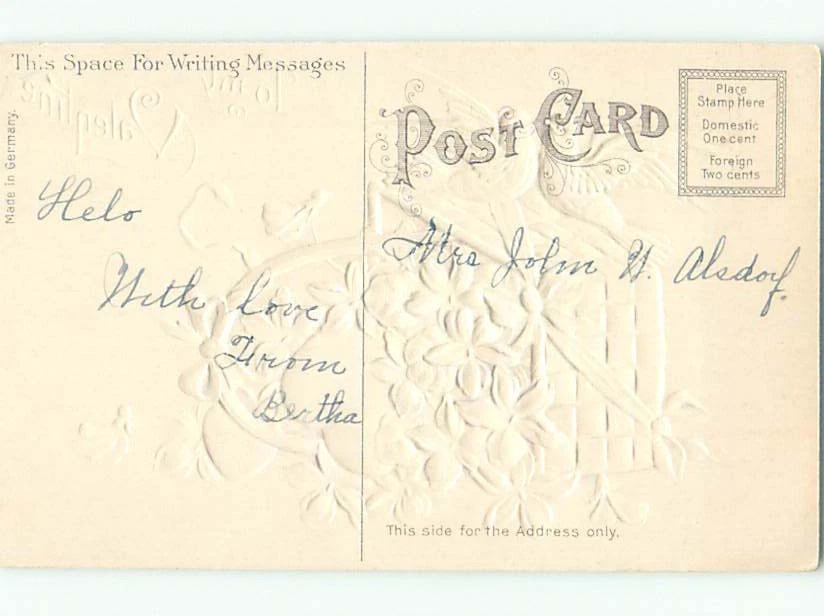 Original/Licensed Reprint: Original Unit of Sale: Single Unit Era: see features for era Postage Condition: Posted Material: Paper Type: Printed (Lithograph) Occasion: Valentine's Day Size: Standard (5.5 x 3.5 in) Signed: No Theme: Holiday Subject: Bird Features: White Border