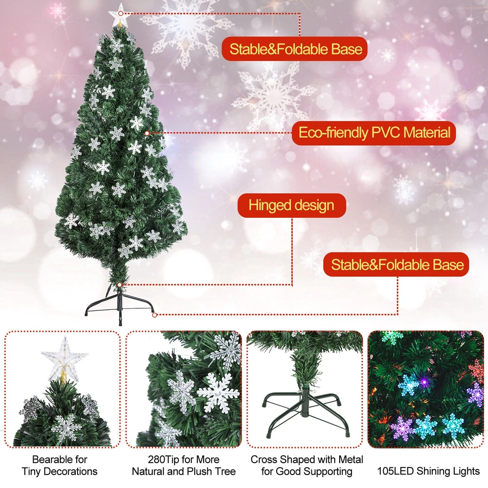4-7ft Pre-Lit Fiber Optic Christmas Tree with 100 LED Snowflakes and Star
