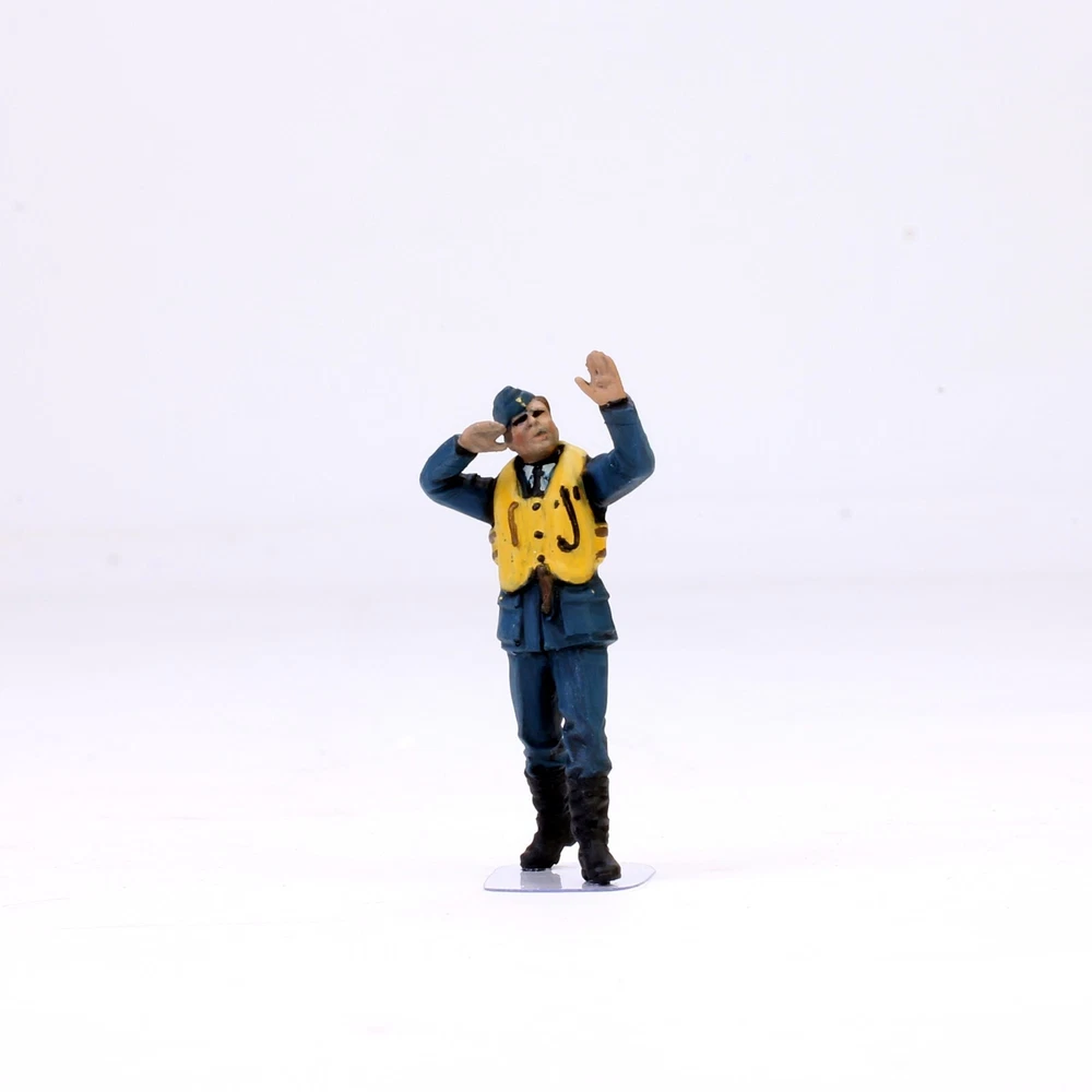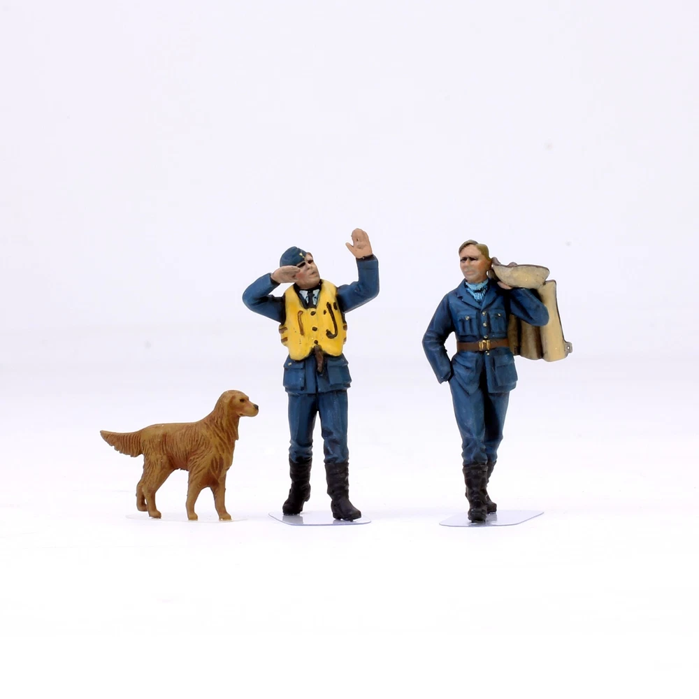 This is a highly detailed model set of 02 RAF Pilots and Dog during WW2, expertly crafted with plastic material and painted with precision. It is compatible with Spitfire MKVB aircrafts and has a scale of 1:48. The set includes 02 figures of the pilots and his loyal companion, perfect for collectors of militaria-themed items and enthusiasts of aircraft models. This Pro Built Model is manufactured in Vietnam. It is suitable for ages 17 and up, and has a Grade rating of C-7 Excellent. This figure set is a must-have addition to any collection, and perfect for display or diorama purposes.