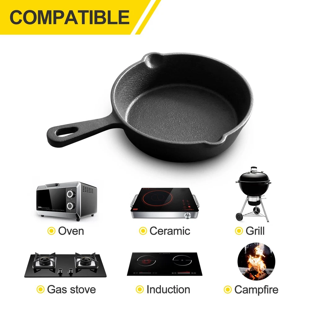 The purpose of the pot: Our mini cast iron skillet set is for individual servings. For cooking serving appetizers and dips, frying an egg, baking mini desserts like baked cookies or brownies, and more Material characteristics: With heat-resistance of up to 500 F, you can sear, sauté, bake, broil, braise, fry in our cast iron egg pan with ease Great value pack: Our value pack comes with 3 pre-seasoned mini cast iron skillets After-sales : provides you with cast iron kitchenware, and provides you with good after-sales service, if you have any questions, please feel free to contact us